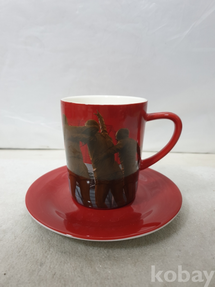 {천원경매} Y-2-0793 밀리타 빨간 머그컵+받침