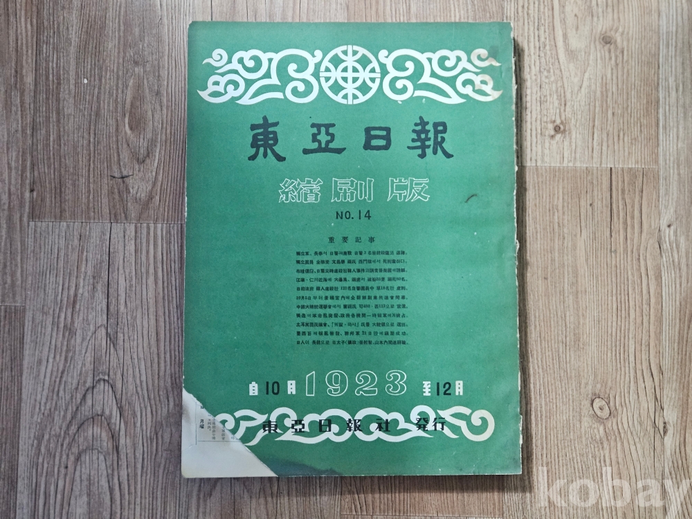 1] 품명 : 東 亞 日 報 -1923년 10월~12월 까지 축쇄하여 만든 신문