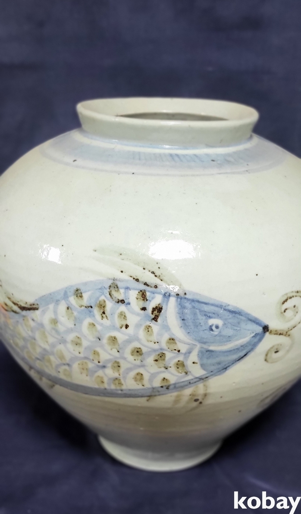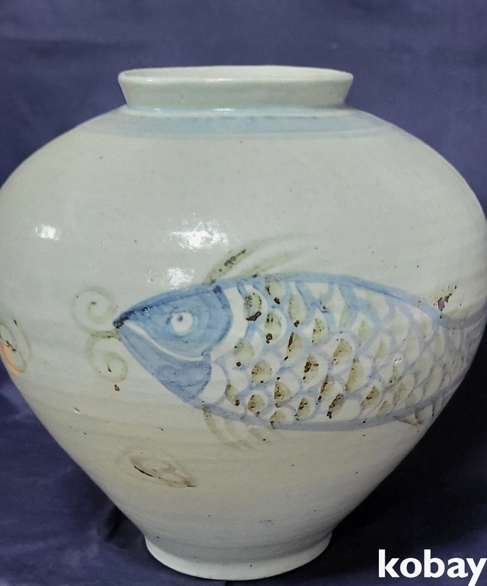 양면에 큰 물고기가 철화로 시문되어있습니다,