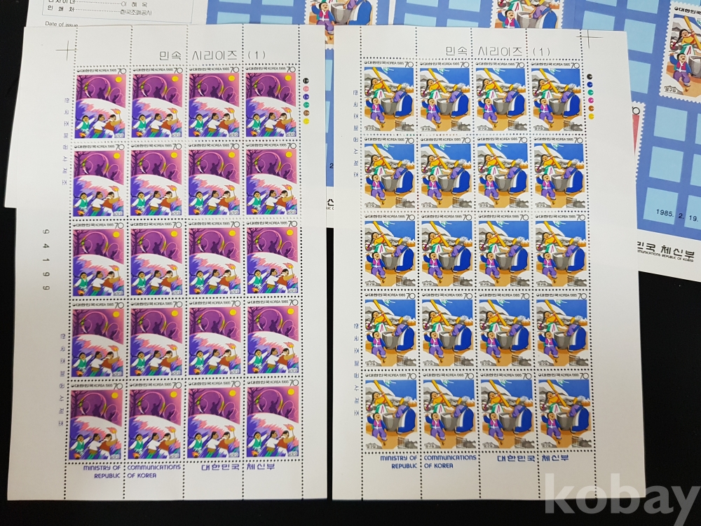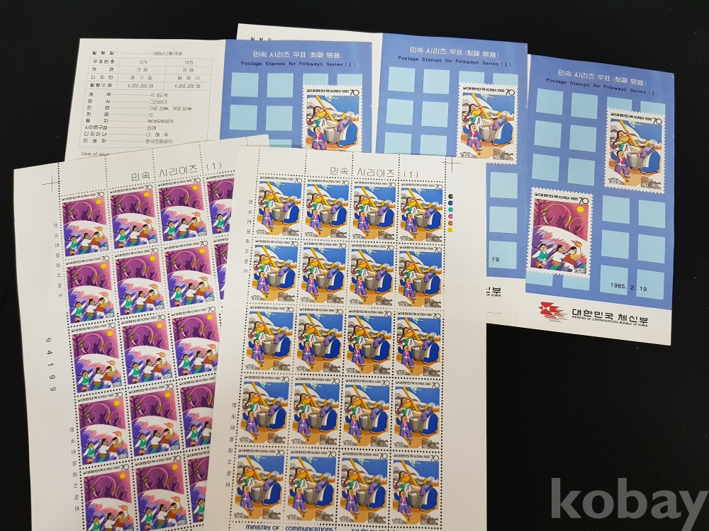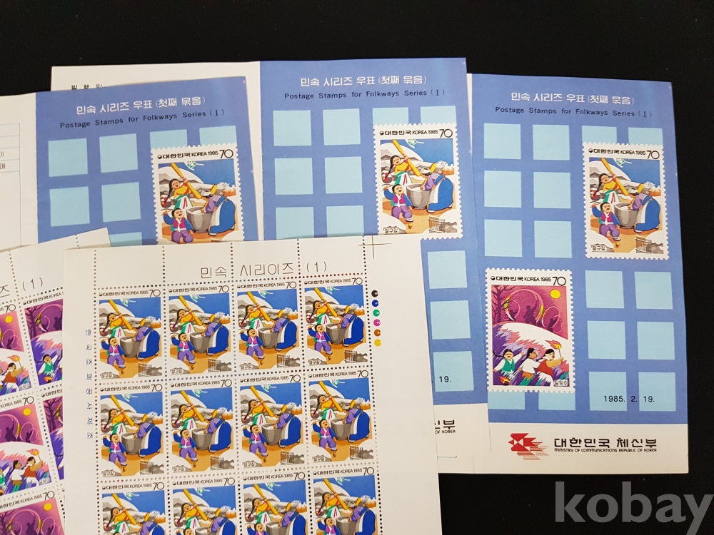- 1985년 민속 시리즈 제 1집 전지, 시트, 안내카드 등