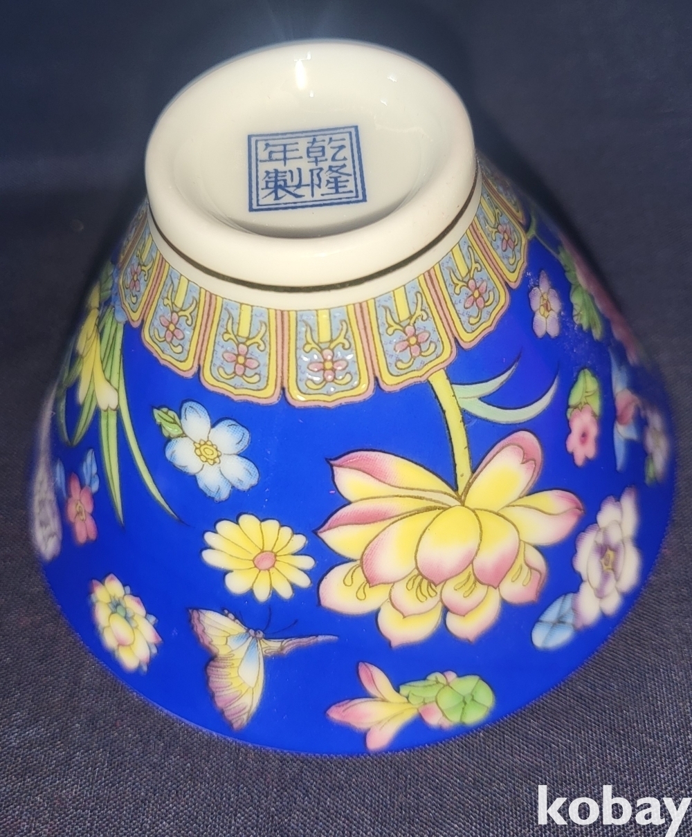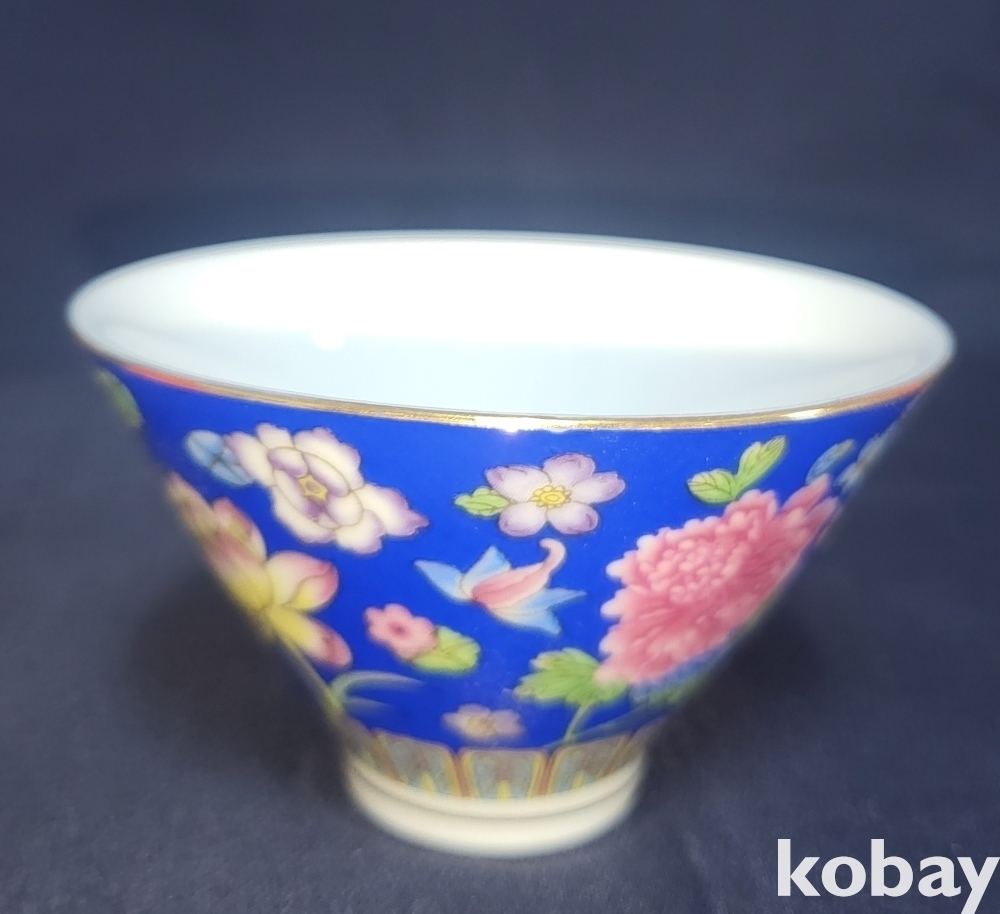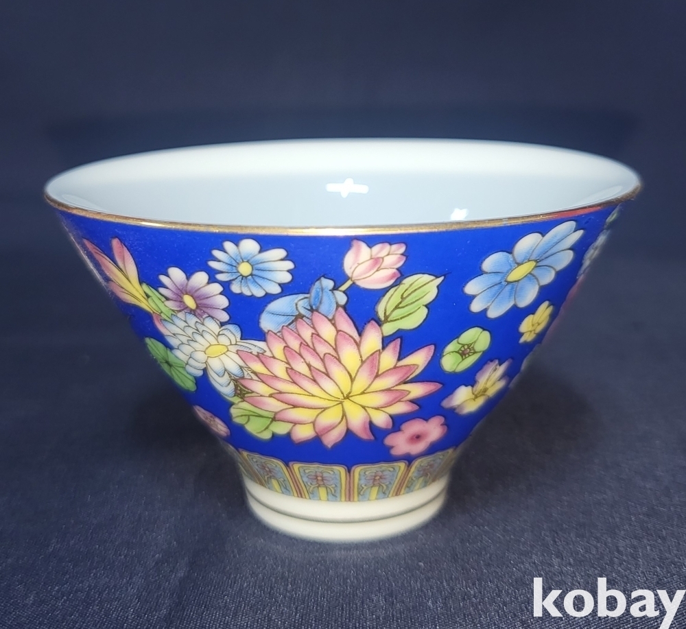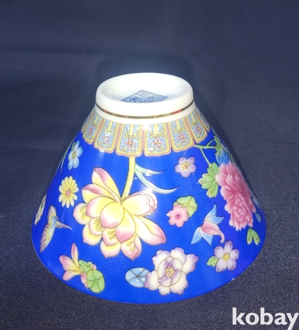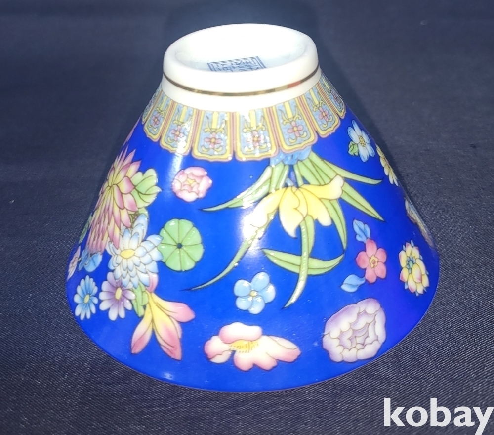 옹정연제 관지 분채 꽃문양 잔입니다,