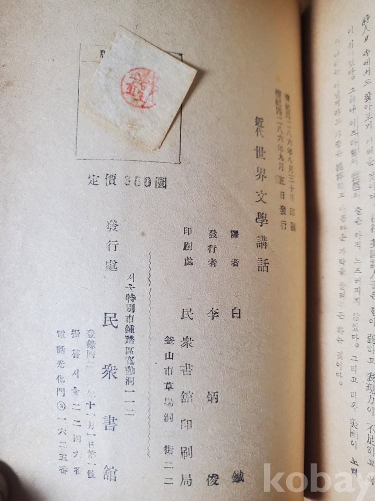1. 근대세계문학강화, 백철(번역), 존 페이시(저), 민중서관, 1953년, 436쪽, 상태 상, 사진 참조