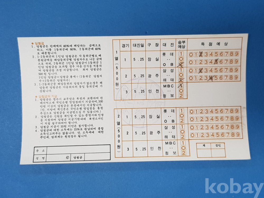 **** 1986년/제9회 야구복권/선동렬(해태투수)'85최우수 방어율상/서울올림픽대회조직위원회