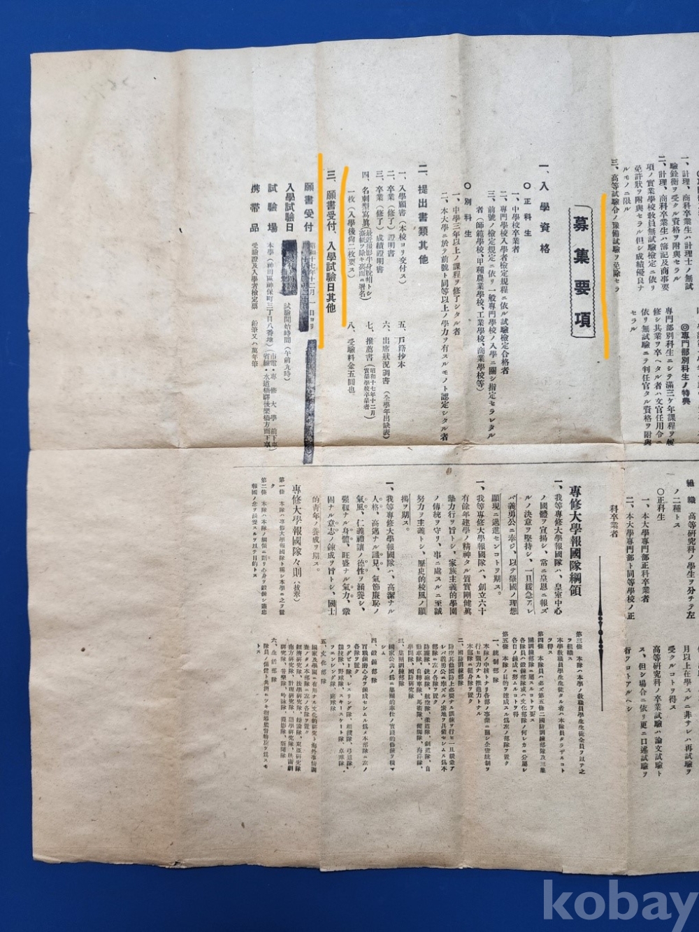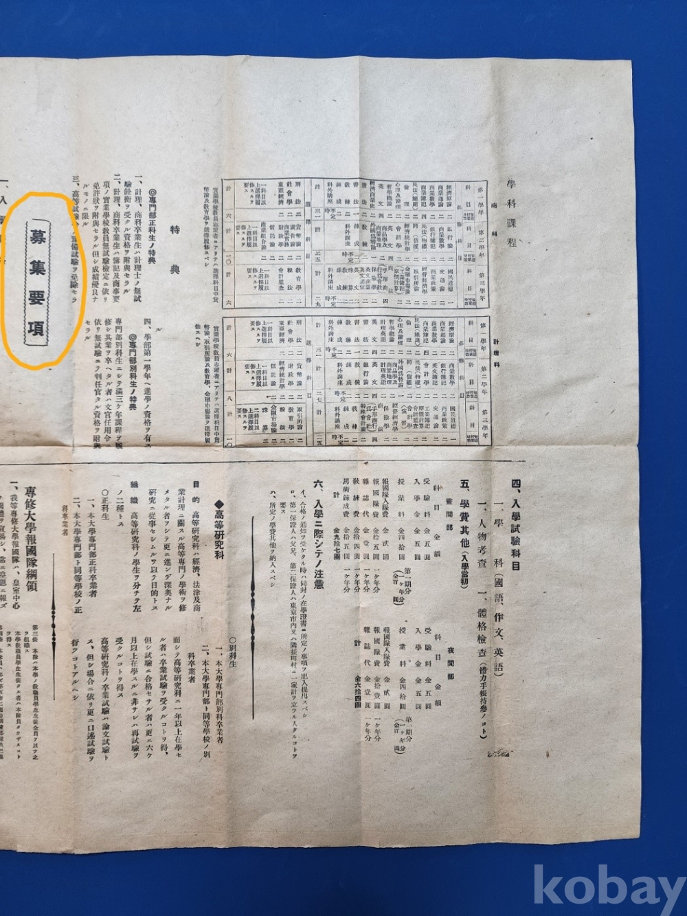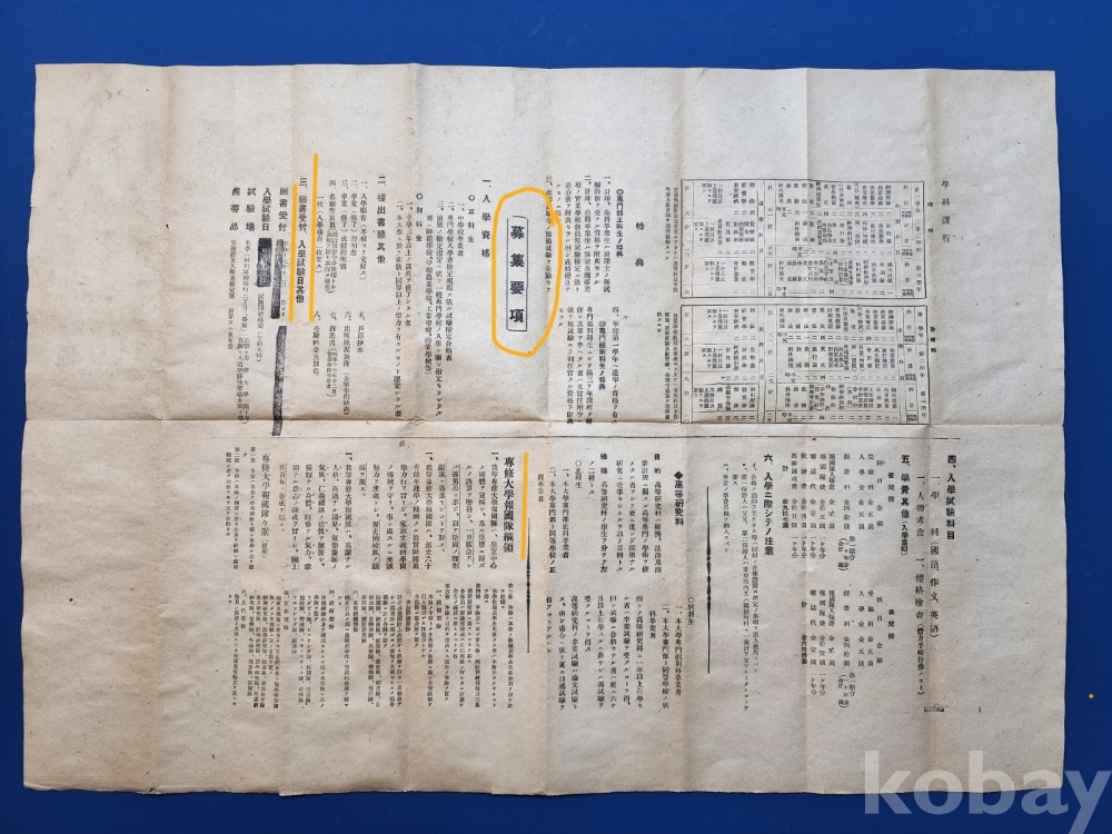 모집요항(募集要項), 입학시험과목 등을 자세하게 안내하고 있다.