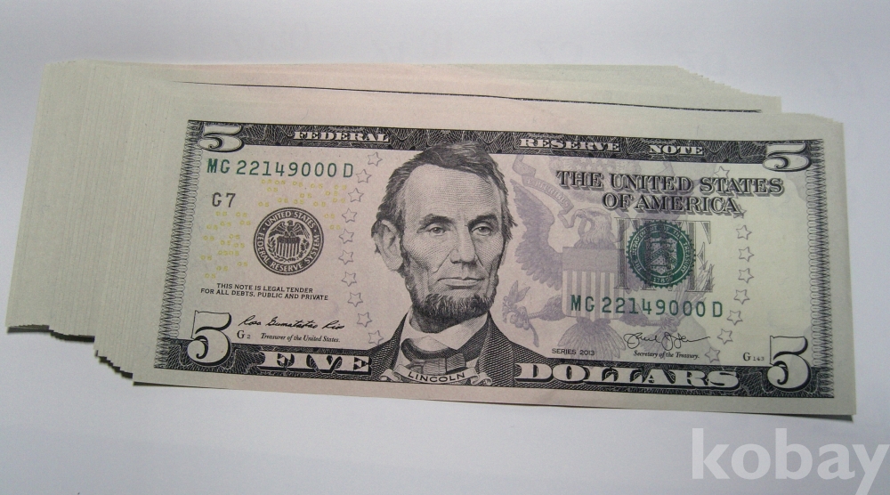 미국 5달러 지폐 2013년 미사용 링컨 (UNC) X 2장