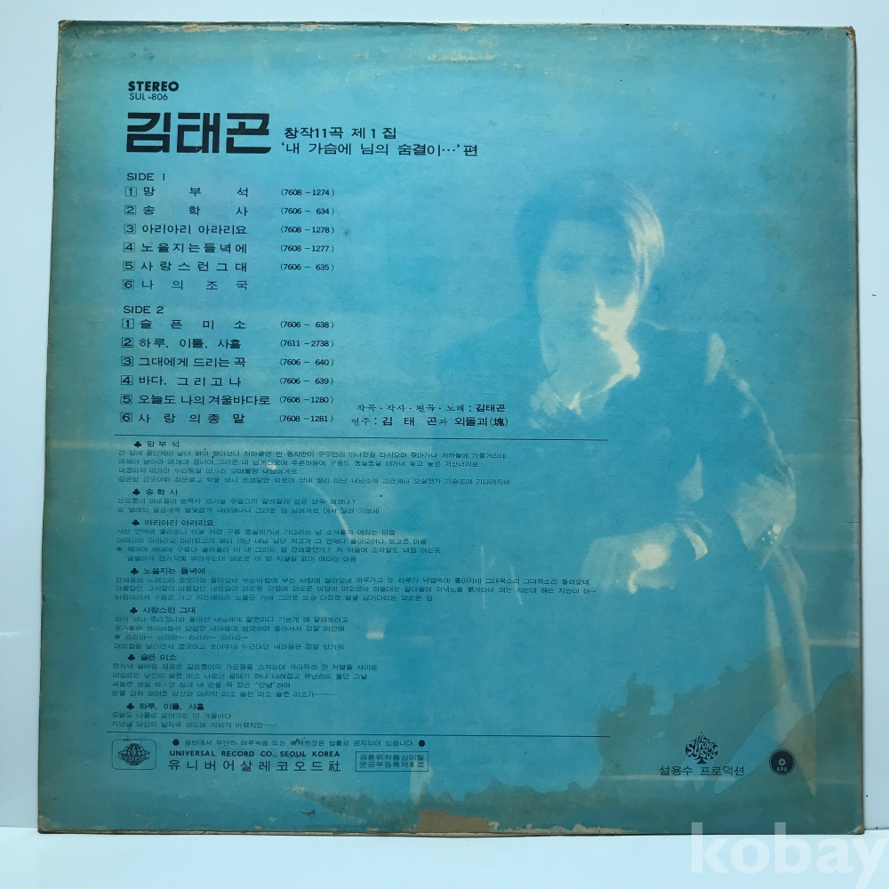 LP 83,820-66 김태곤 - 망부석 _ 자켓 EX 알판 EX 77 년 국내반