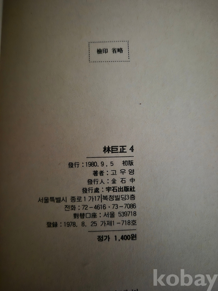 임꺽정4 고우영 우석출판사 1980