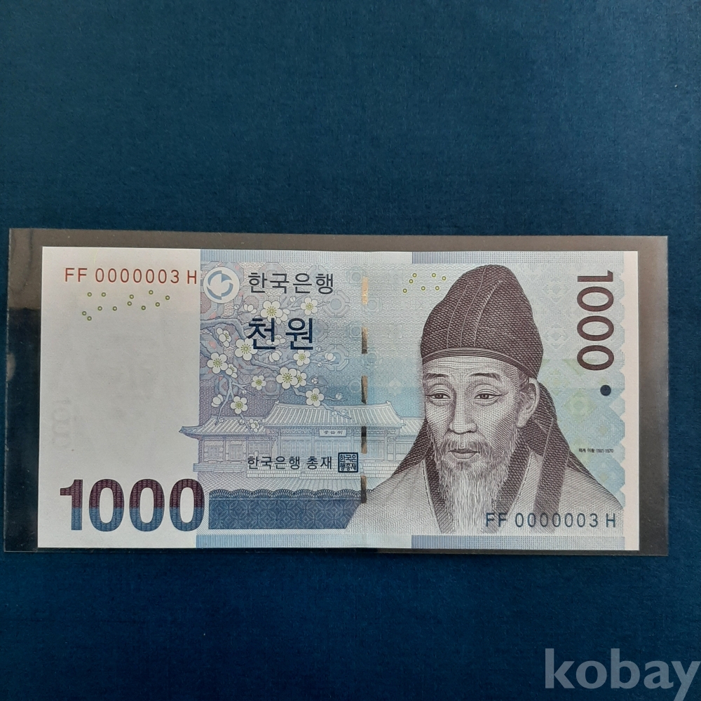 한국은행 / 다 1000원권 / 빠른번호 0000003번