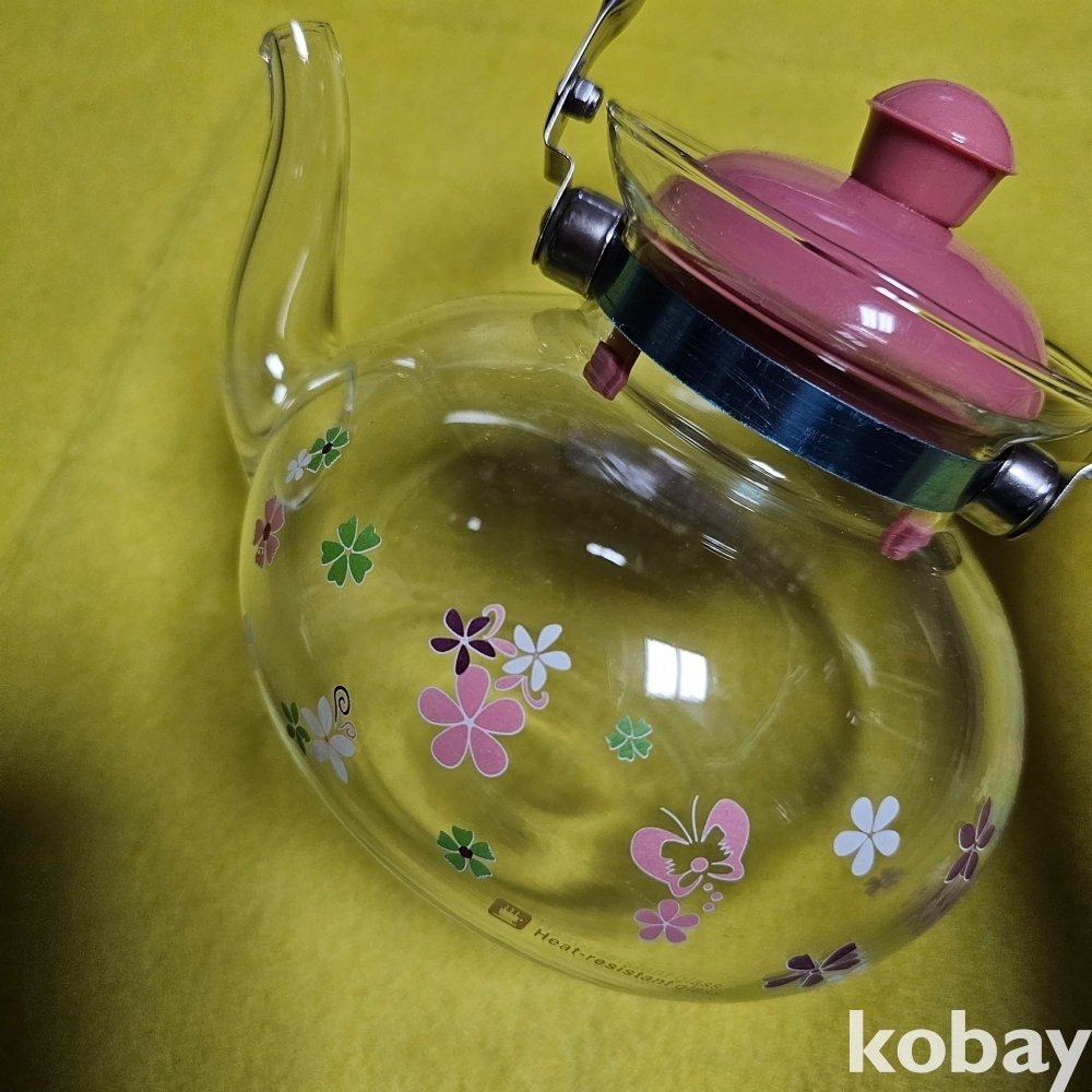 (((茶주전자))) 꽃그림이 이쁘게 있는 유리 茶주전자