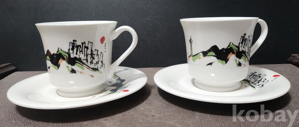 찻잔 8 x 11.8 x 8.5 받침대 1.8 x 15 x 15 < 미사용 박스 완비 작품 >
