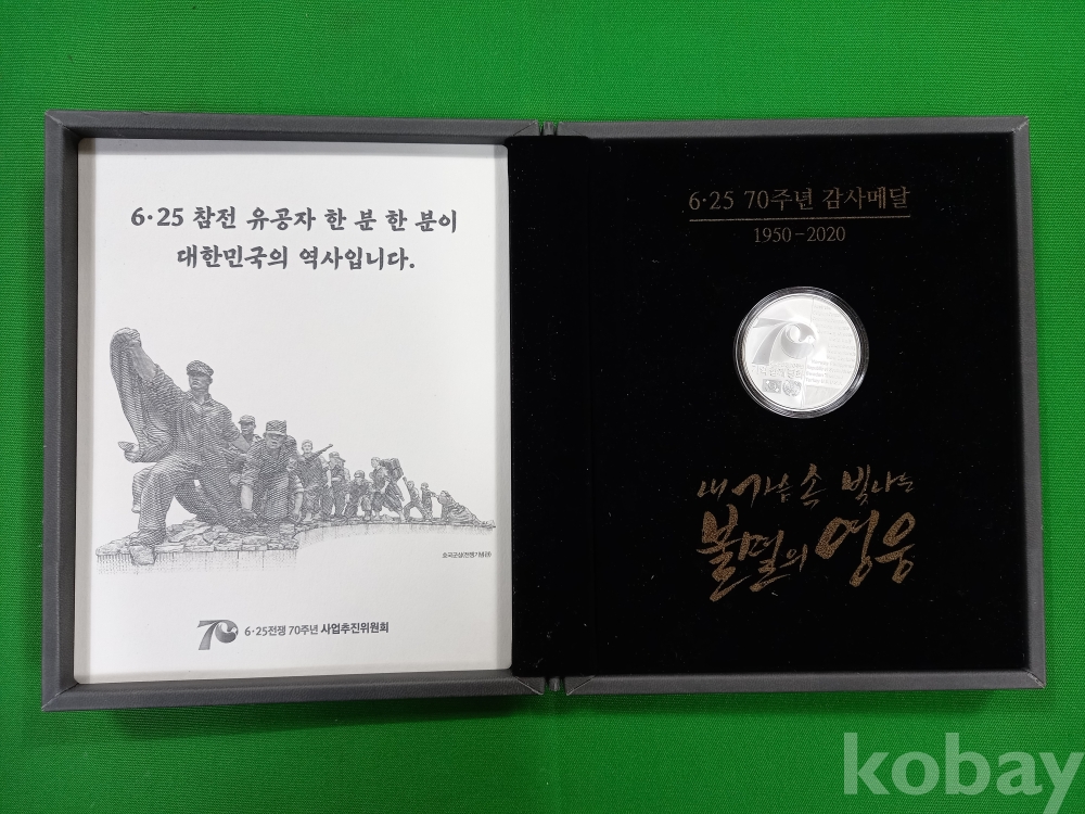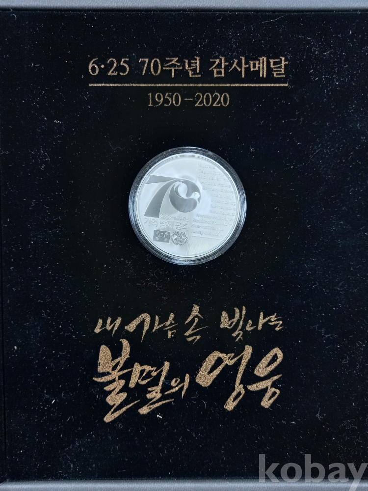 '6·25전쟁 70주년 감사메달'로, 2020년 6·25전쟁 70주년을 맞아 생존 참전유공자분들께 수여된 기념 메달입니다.