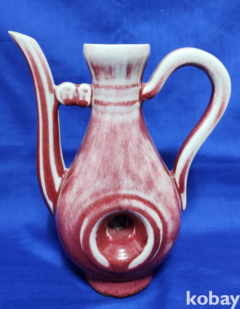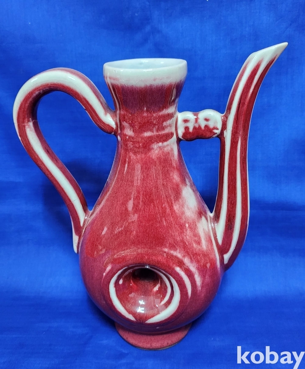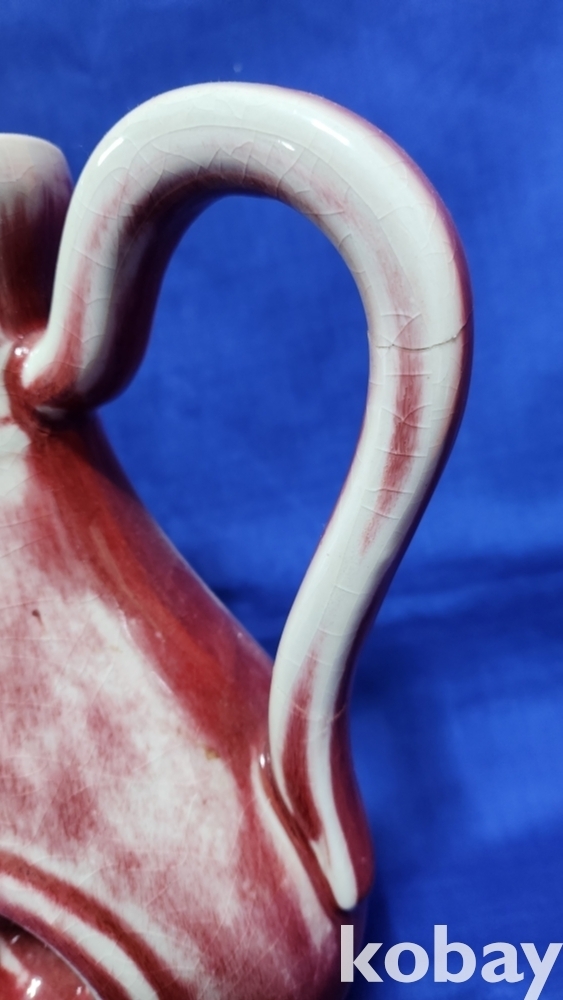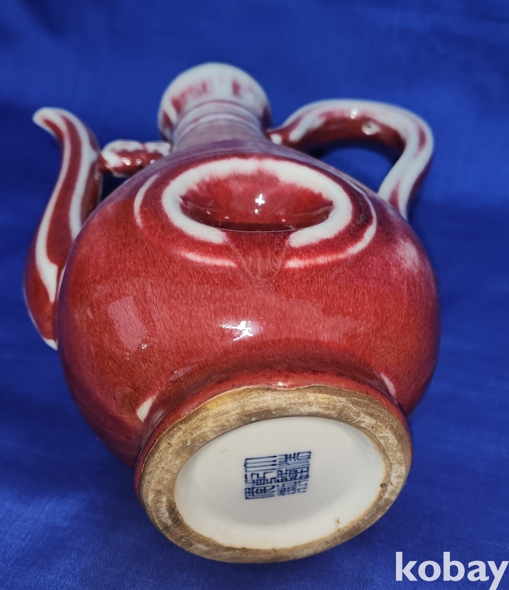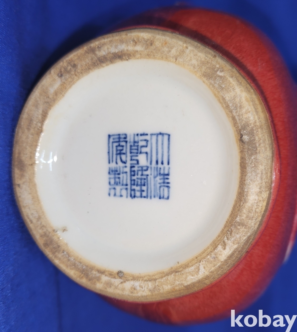 대청건륭관지 보이는 진사 투각 주자형 기물입니다,기물 중앙에는 관통이 보임니다,손잡이는 제살 붙임입니다,
