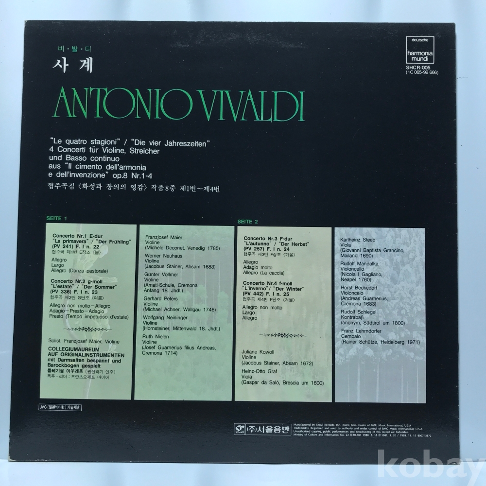 LP 17,010-15 Antonio Vivaldi - Die Vier Jahreszeiten _ 자켓 EX+ 알판 EX EX+ 89 년 국내반