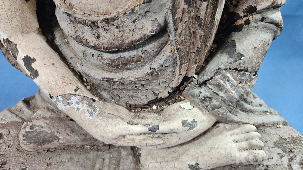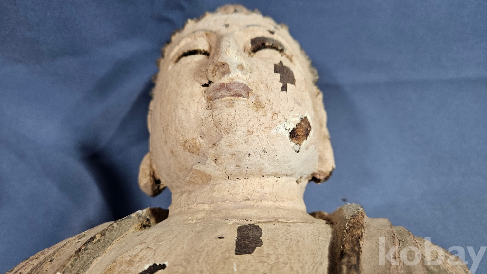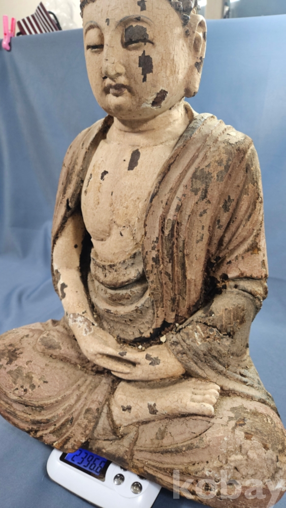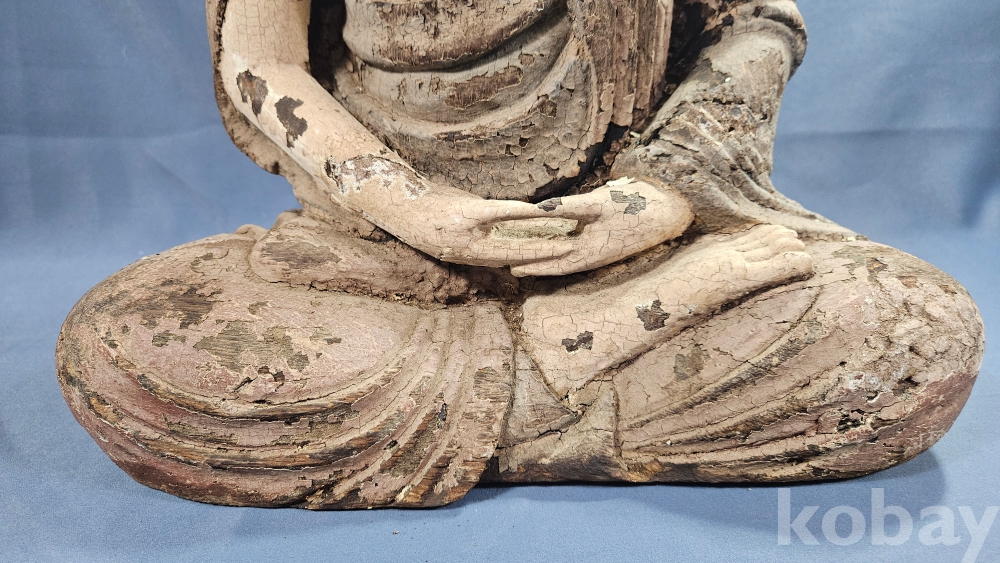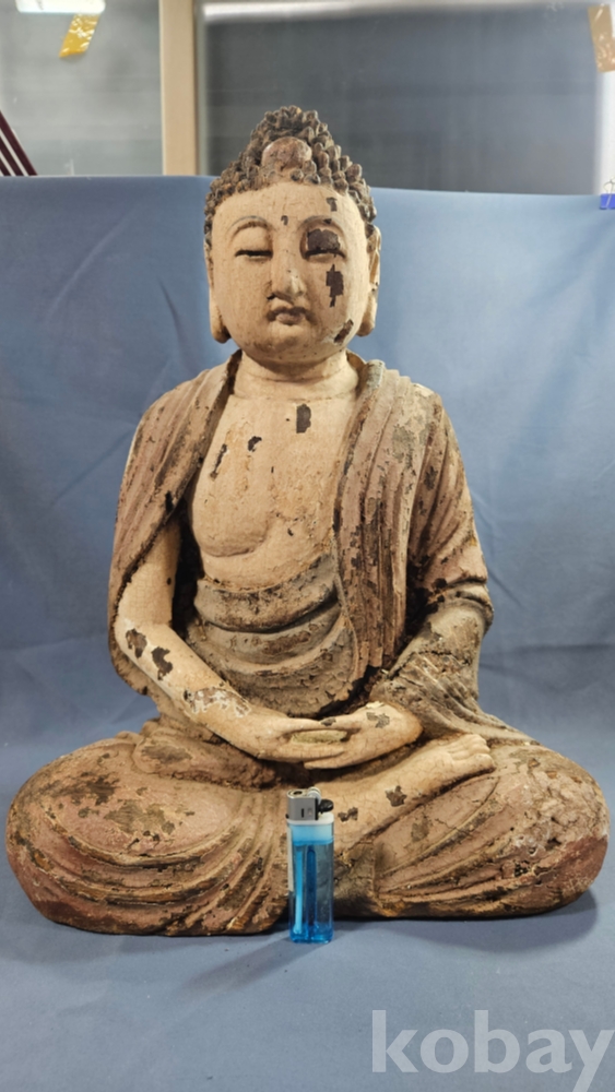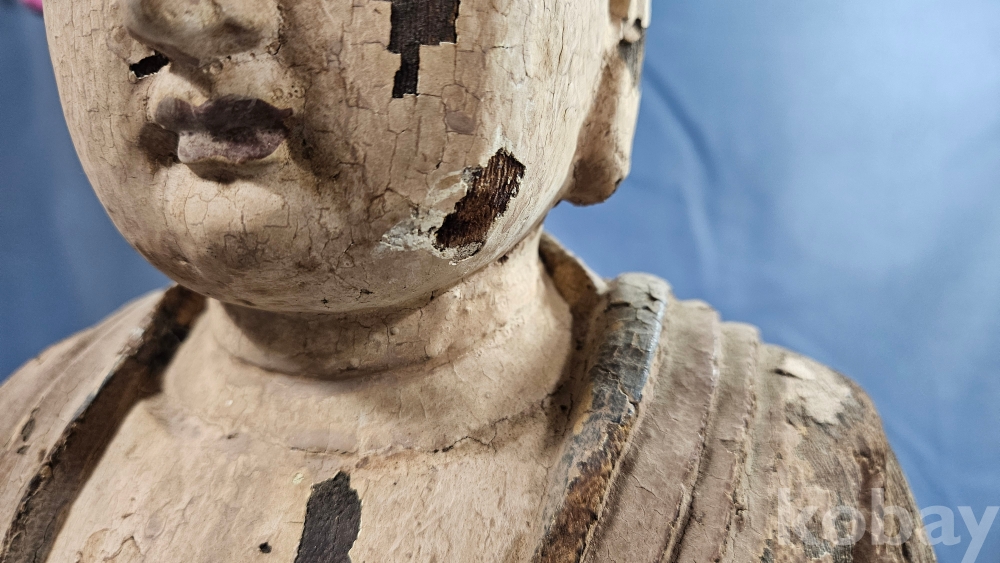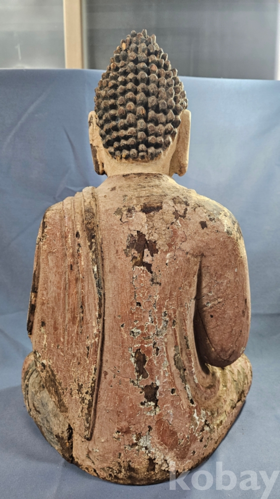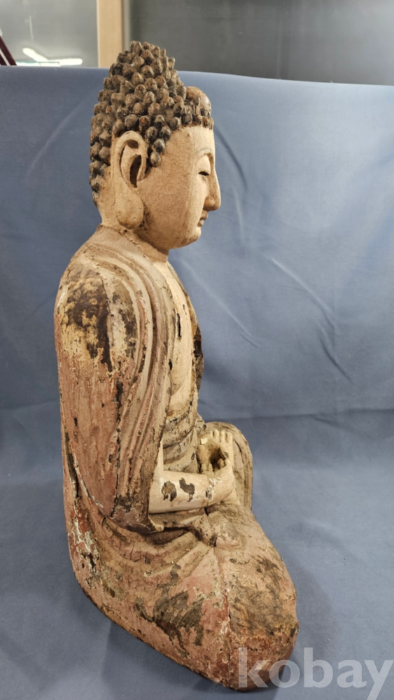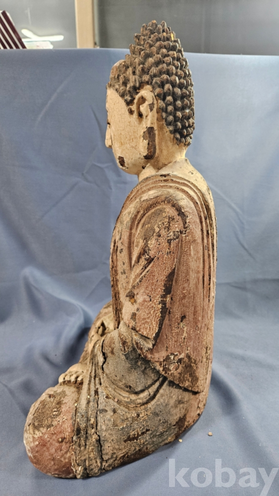 채색이 남아있는 상당히 큼직한 사이즈의 나무조각 불상 입니다.