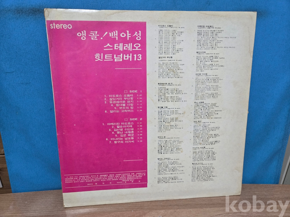 | 자켓상태 | EX : 약간의 마모, 모서리 찢김 존재 | 음반상태 | EX : 재생에 영향 없는 가벼운 기스 존재 | 발매정보 | 초반 | 가사지여부 | 무 |
