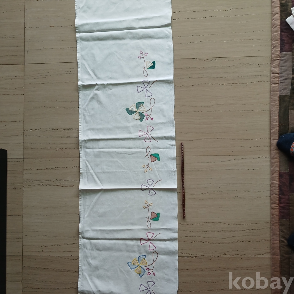 이불의 깃을 대는 긴 광목에다른 천으로 모양을 오래 손 바늘로 덧댄 아프리케 기법의 작품입니다 ᆢ 실 사용가능합니다
