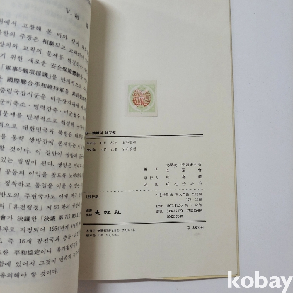 [천원경매] 통일논의의 제문제 / 대왕사 초판본으로 귀한 시대의 자료 도서