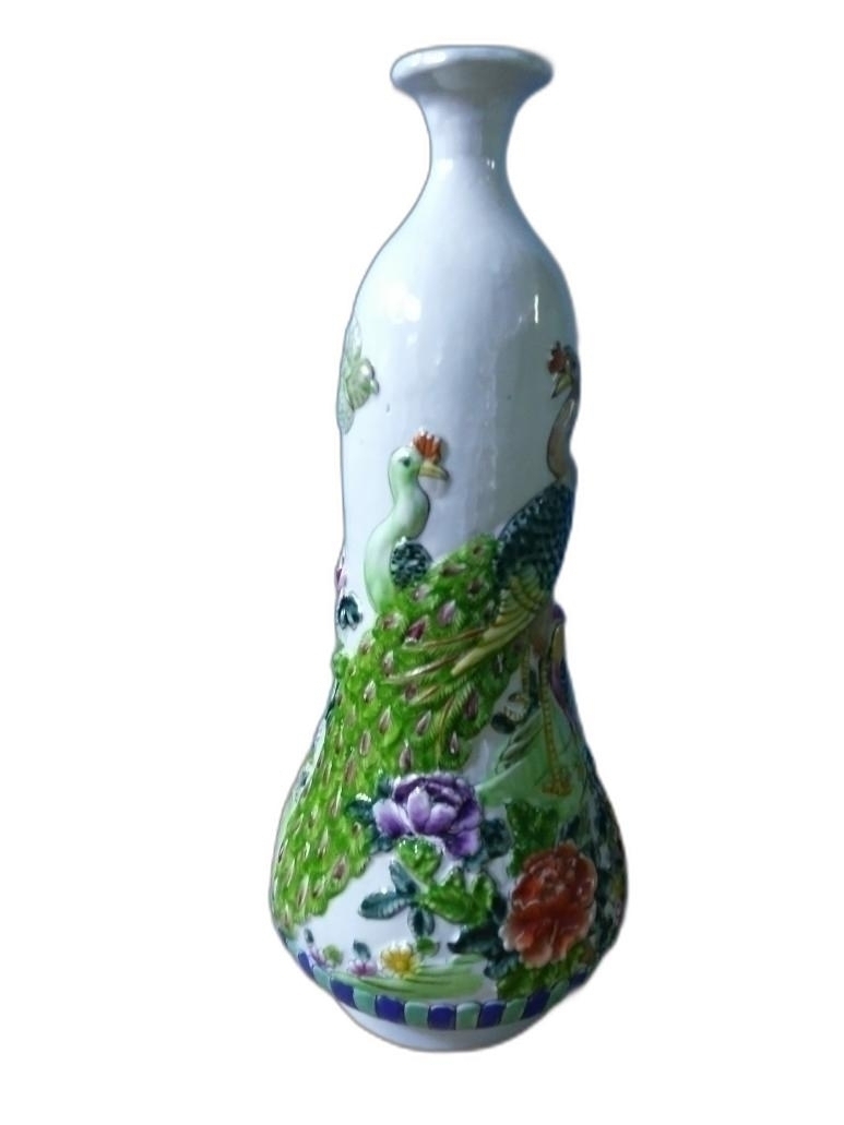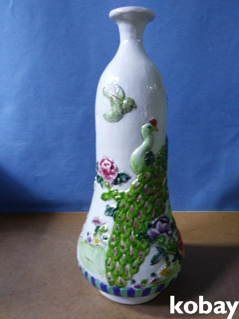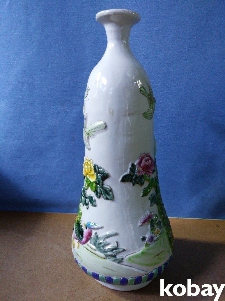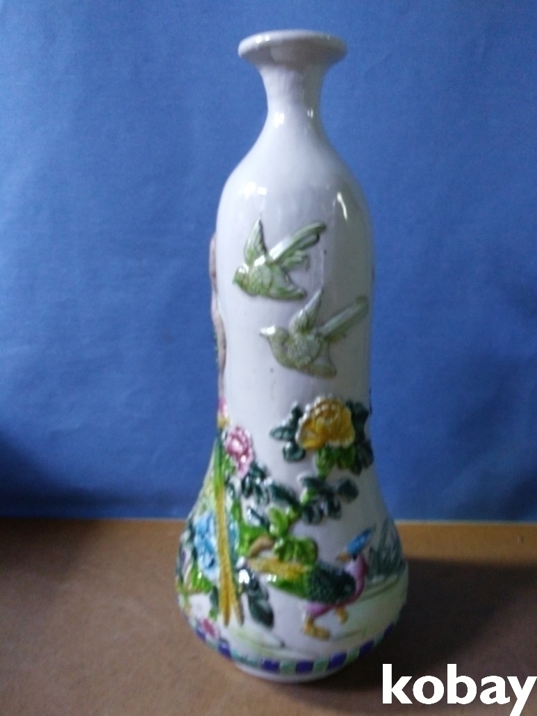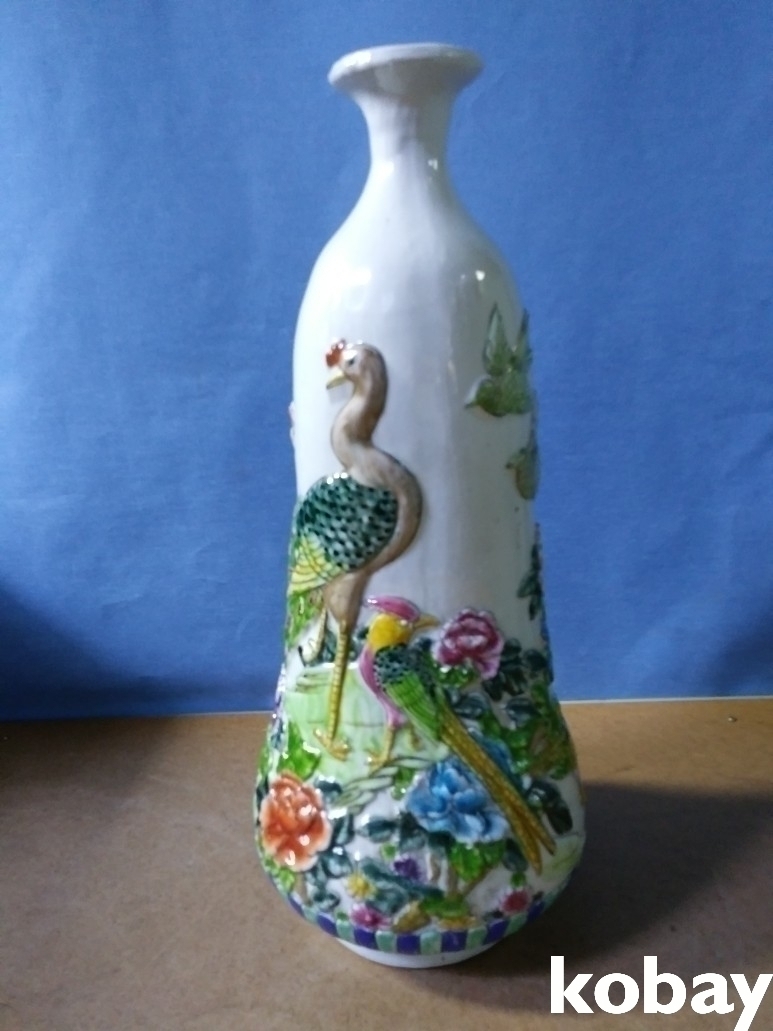 다양한 새와 꽃 모양이 아름답게 표현된 도자기 입니다.