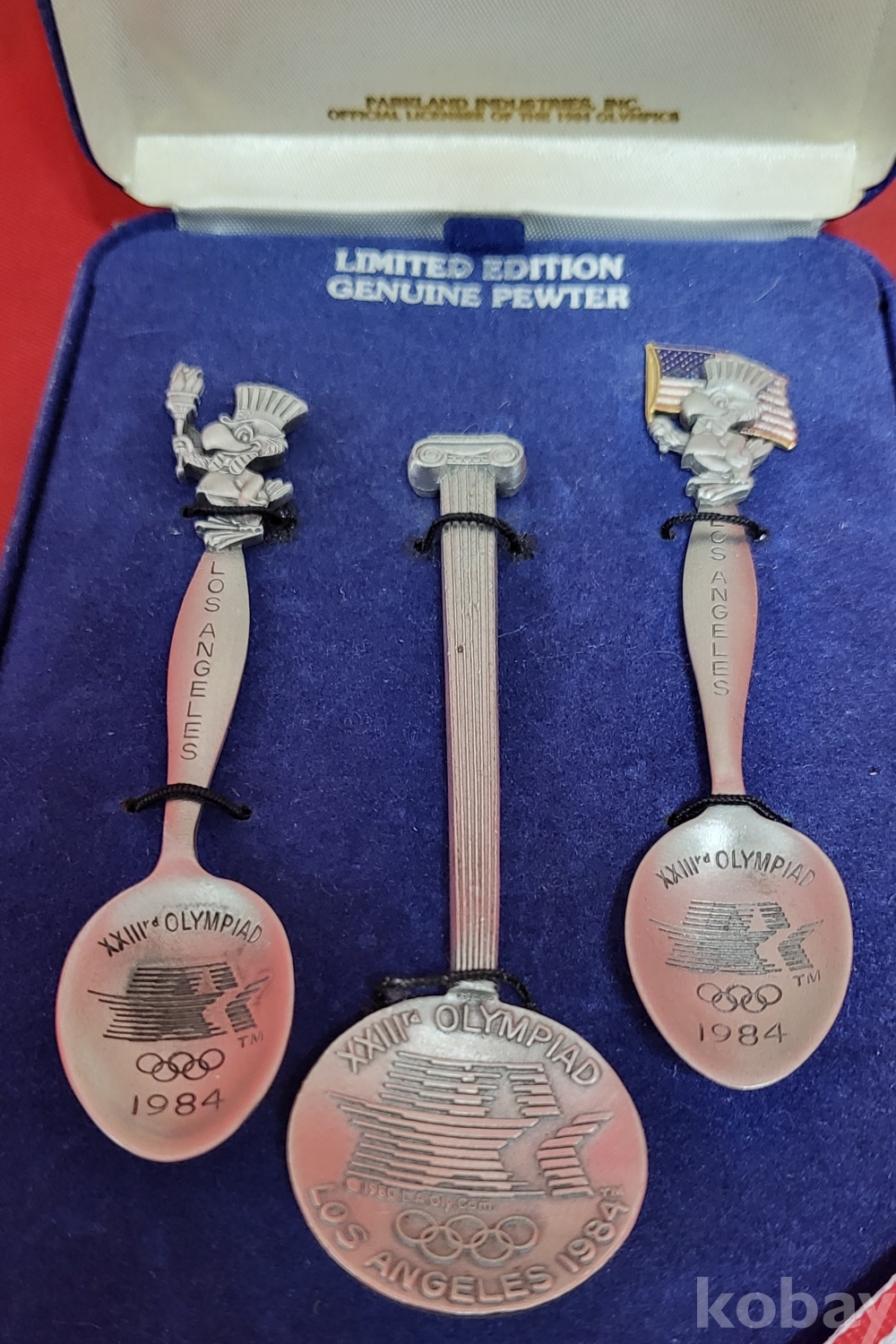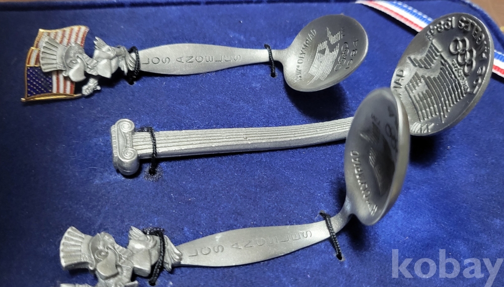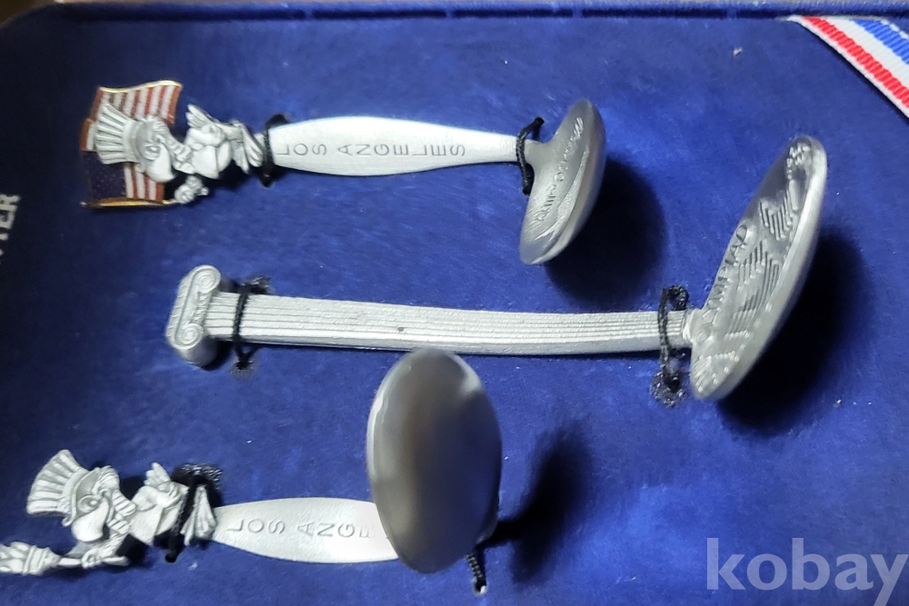 1984 년도 미국 LA 올림픽 기념 은제로 보이는 티스푼 3개 미사용입니다,
