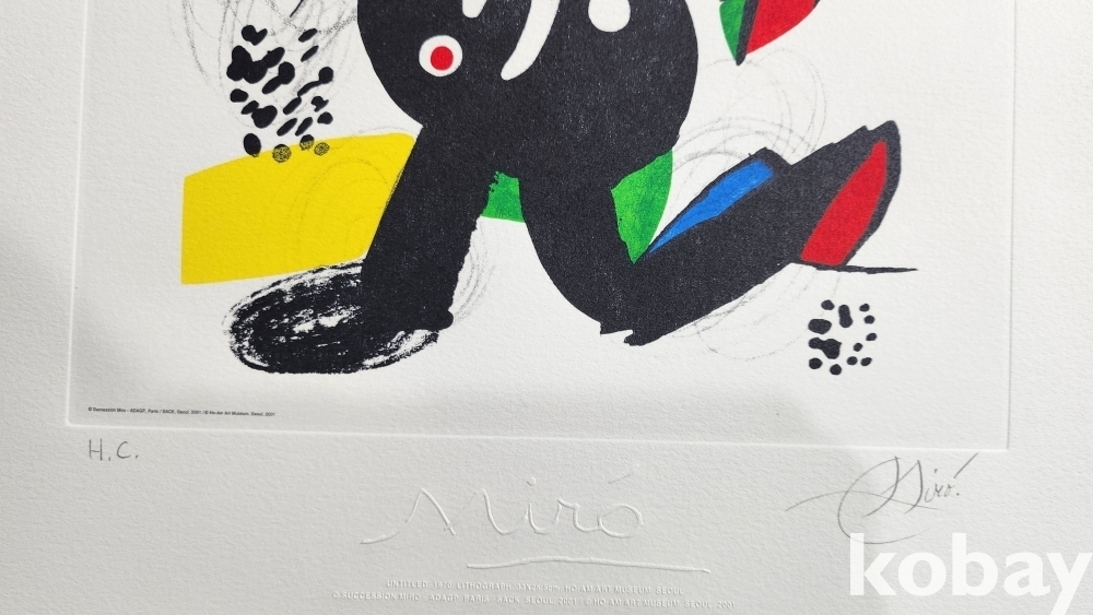 스폐인의 유명 서양화가 로안미로 사인이 보이는 압인 판화입니다,