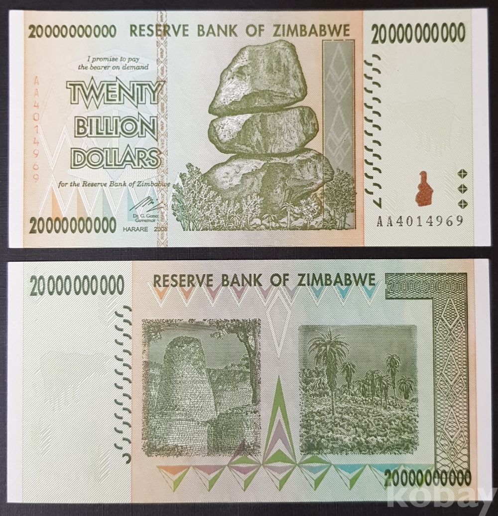 나라 : 짐바브웨 액면 : 20,000,000,000 달러