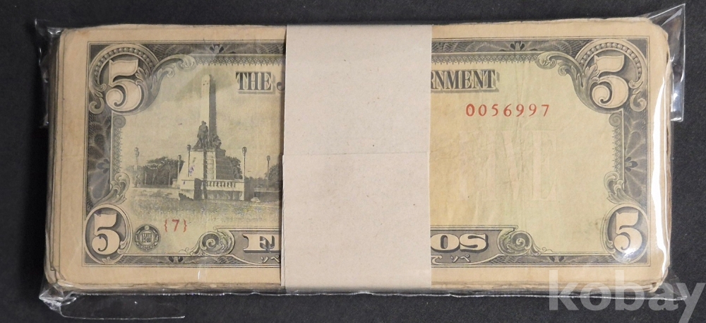 - 태평양 전쟁 일본 군표 5페소 필리핀 사용 약 100장 다발- 군용 수표