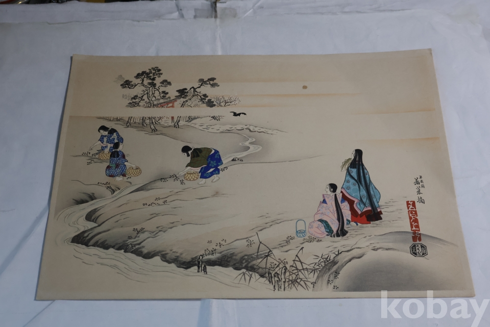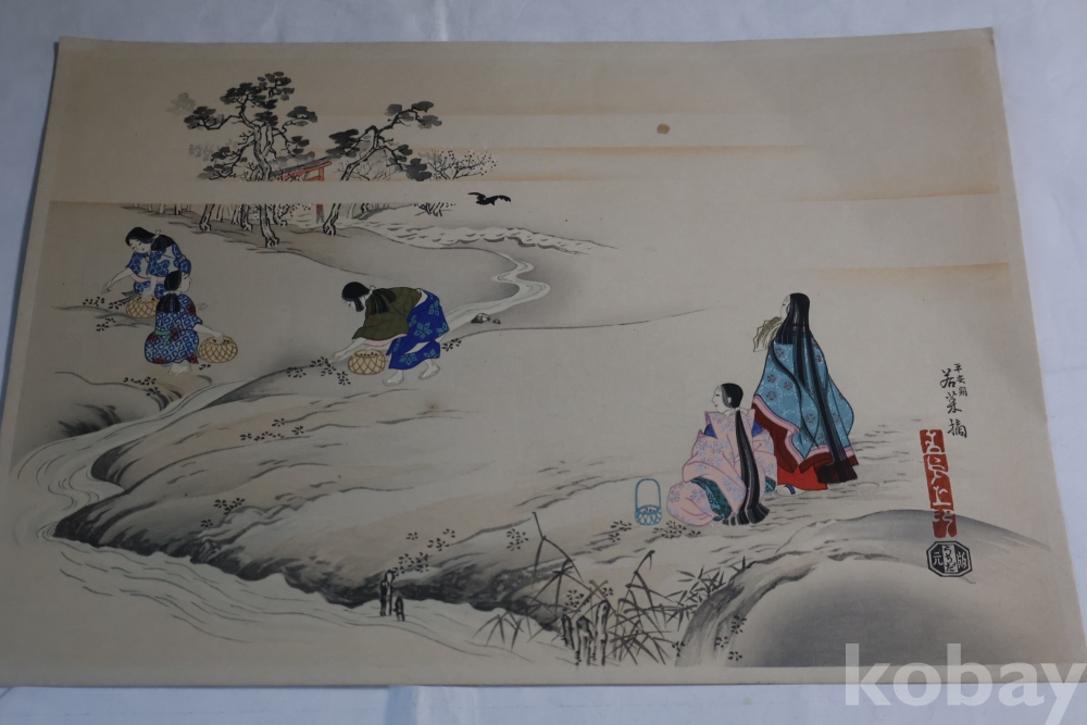 목판화 임니다 일본 고대 풍습을 주제로 한 명화 임니다 소화초기의 명작 임니다 배접종이가 보임니다