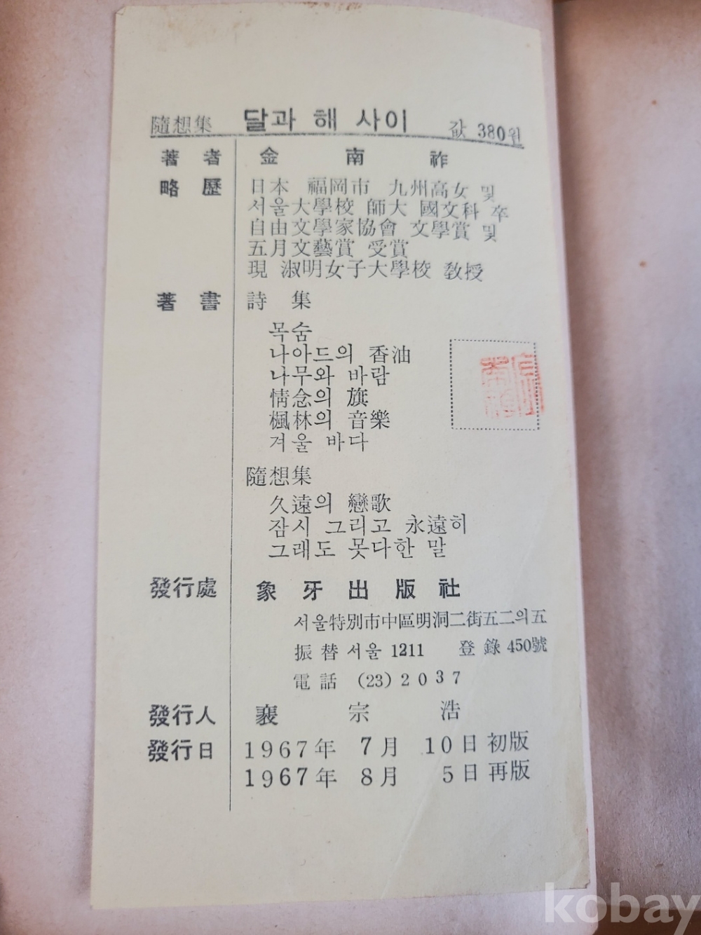 1. 달과 해 사이, 김남조, 상아출판사, 1967년, 330쪽, 사진 참조