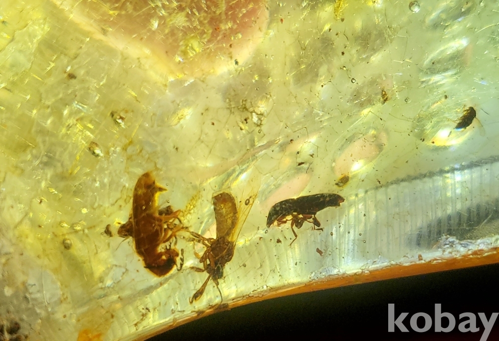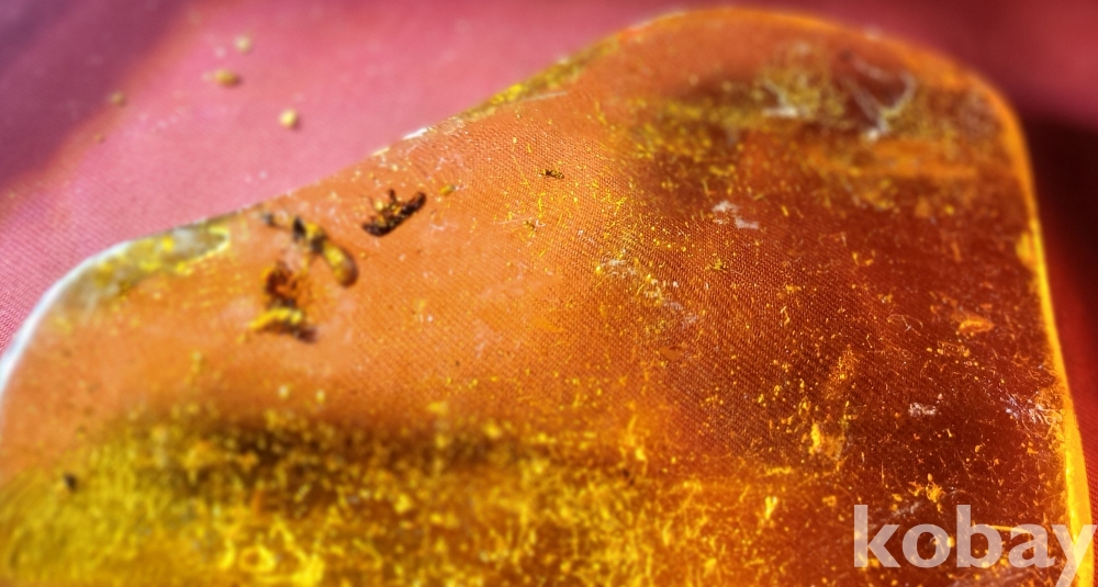 불빛이 투과되며 내부에 이물질이 들어있는 호박입니다,