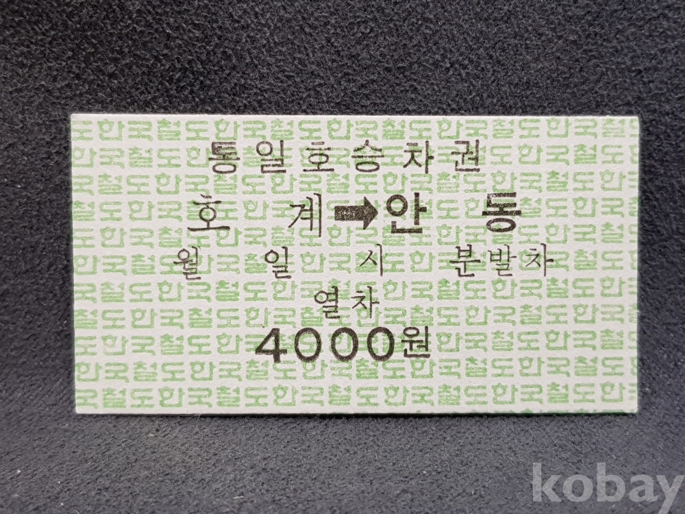 - 미사용 통일호 승차권 " 호계 ▶ 안동 " 4000원