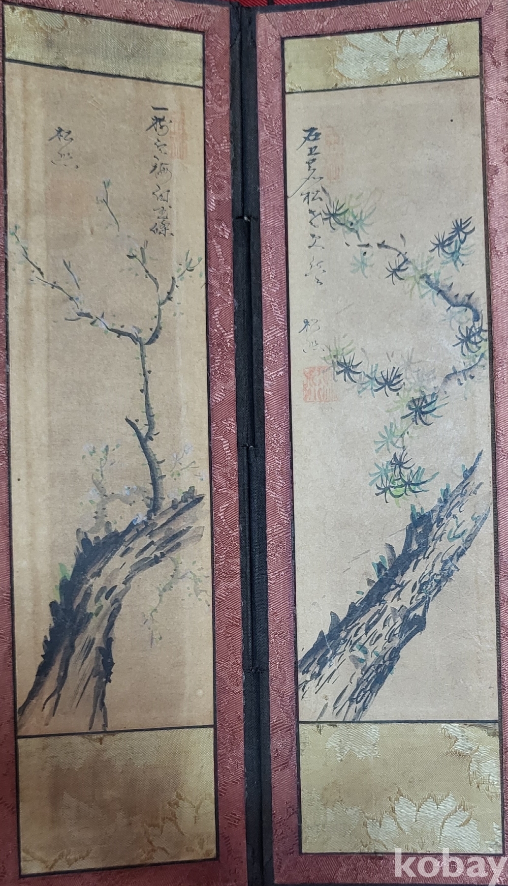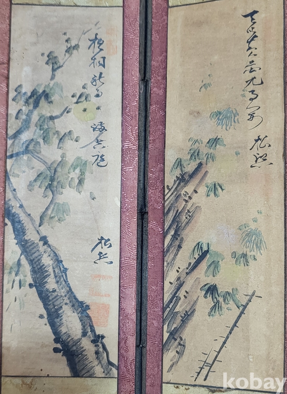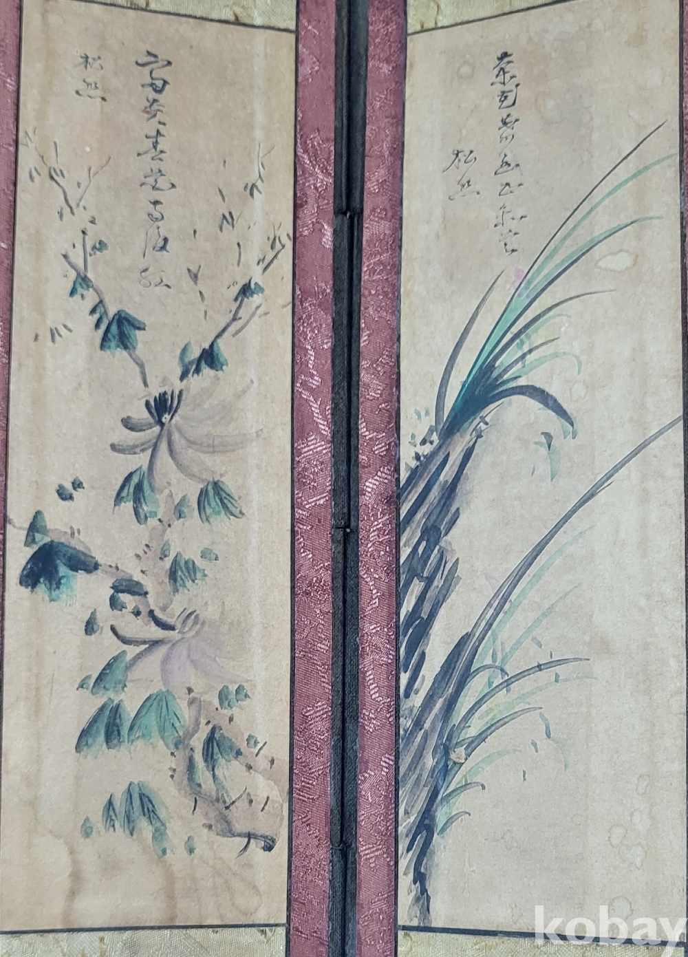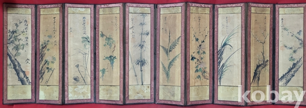 구한말 연대 갖춘 화조문양 10폭 소병풍입니다,