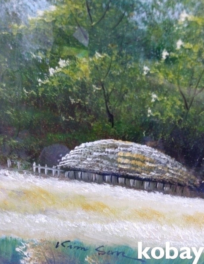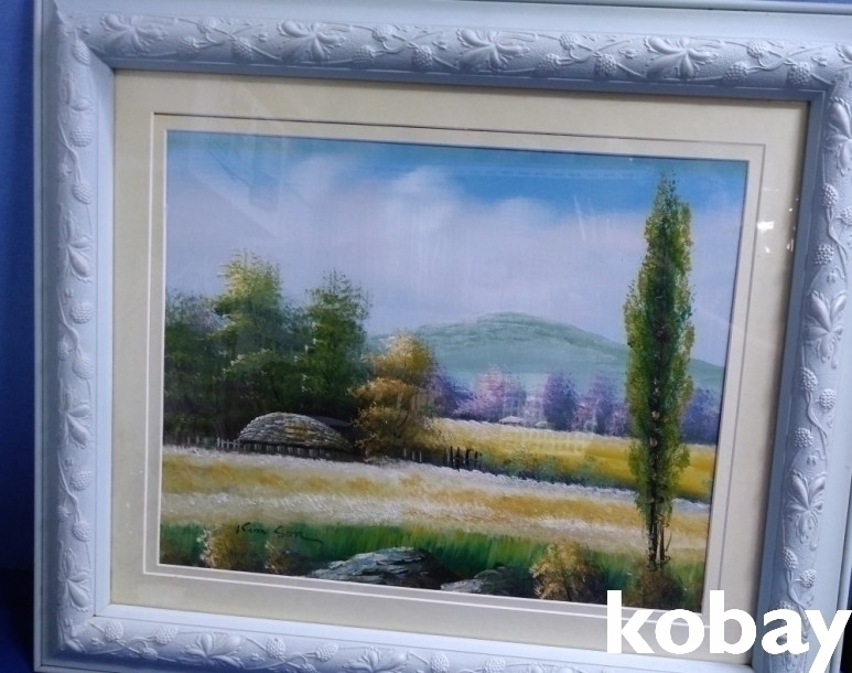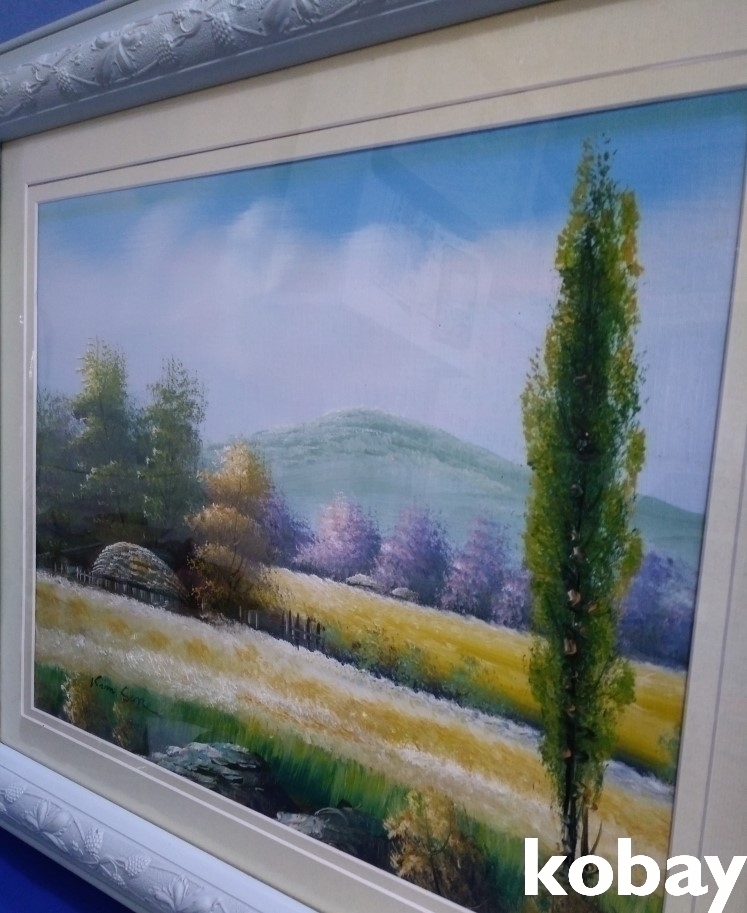 초가집과 들판 풍경 유화 액자 입니다.