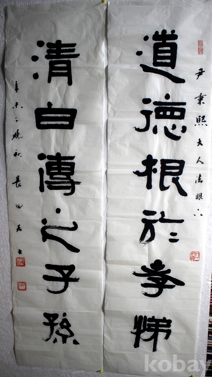 문공부장관상을 수상한 長田(장전) 하남호의 2폭 대련서예작품