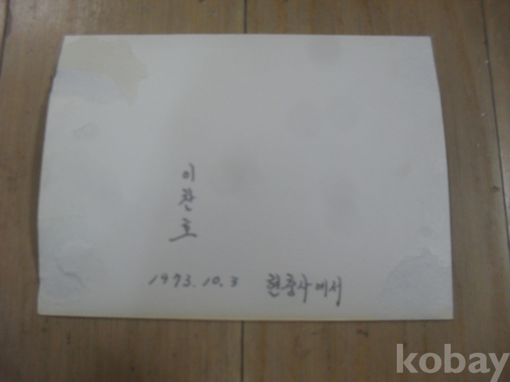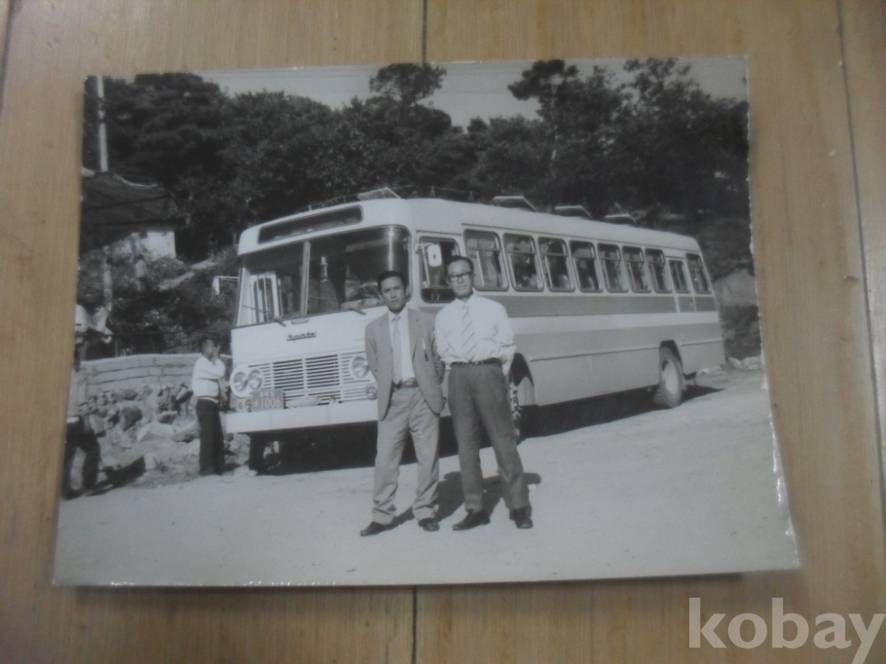 1294h)73년 현충사 주차장 관광버스 앞에서 관광객 사진.