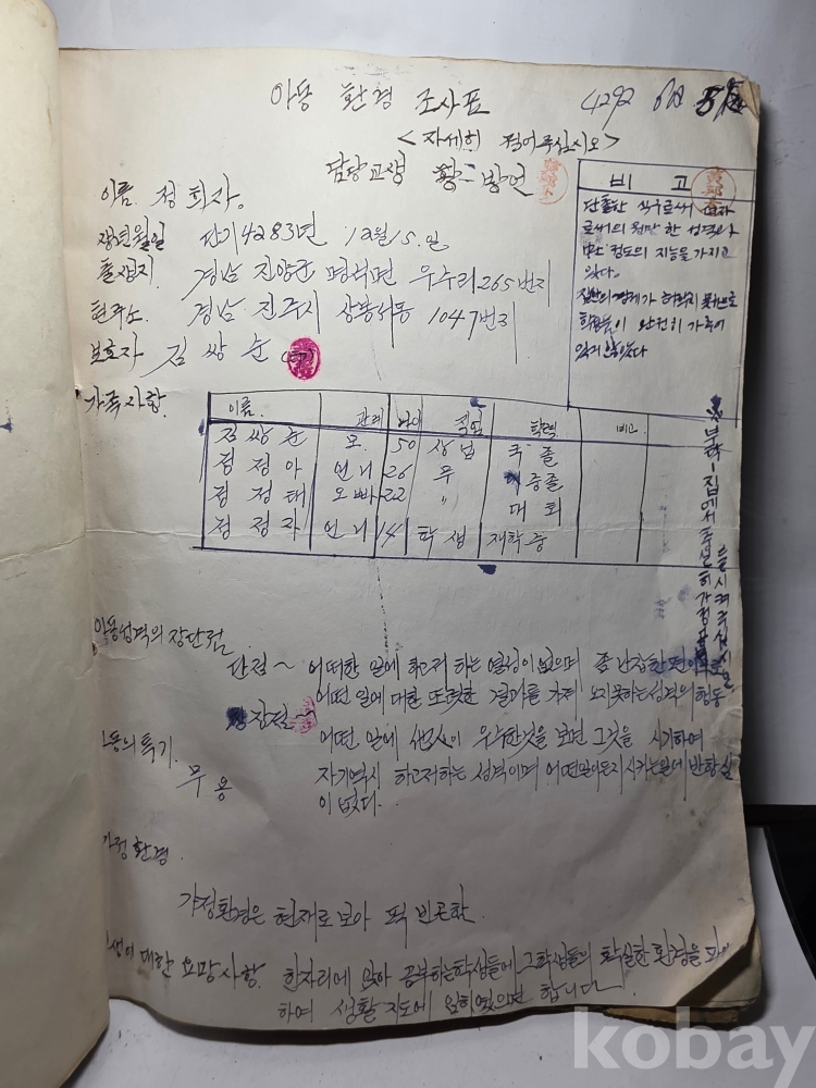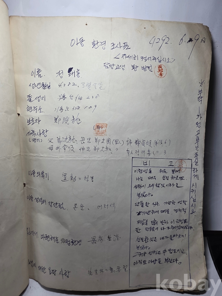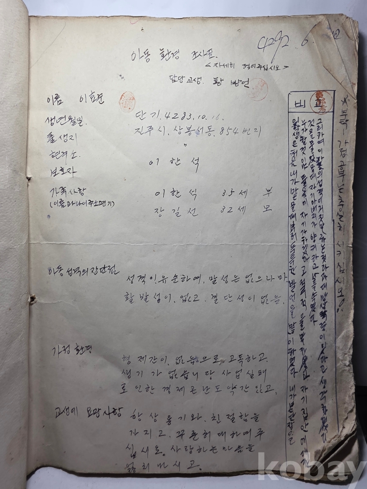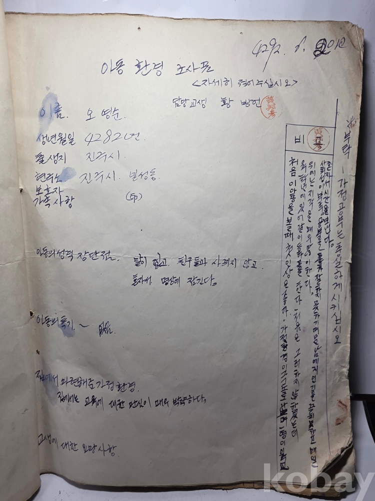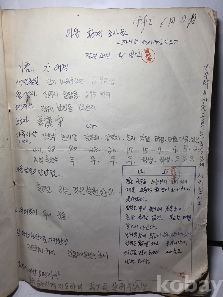 학생들 생활기록.