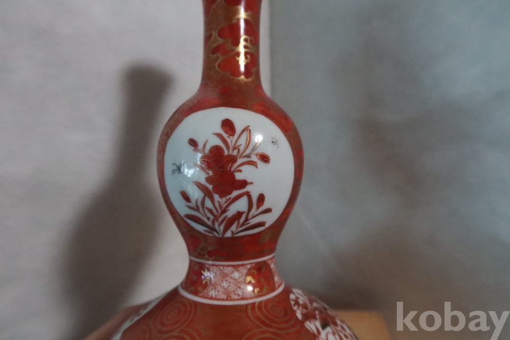 명치기의 구곡 호리병 도자기 임니다 레드구타니로 유명한 명품 임니다 밑에 4 개의 그림 위에 3개의 그림을 가진 명품 임니다 귀한 호리병 임니다 굽에는 세월의 흔적이 보임니다 사진 참조 하세요