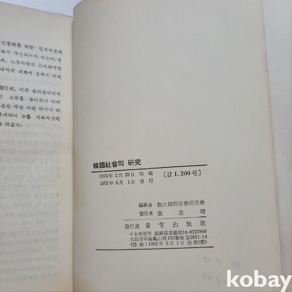[희귀본] 형설출판 1970년대 초판본 '한국사회 연구 관련 책자' 귀한 자료 도서 입니다. ; 추가 이미지 요청 가능합니다.