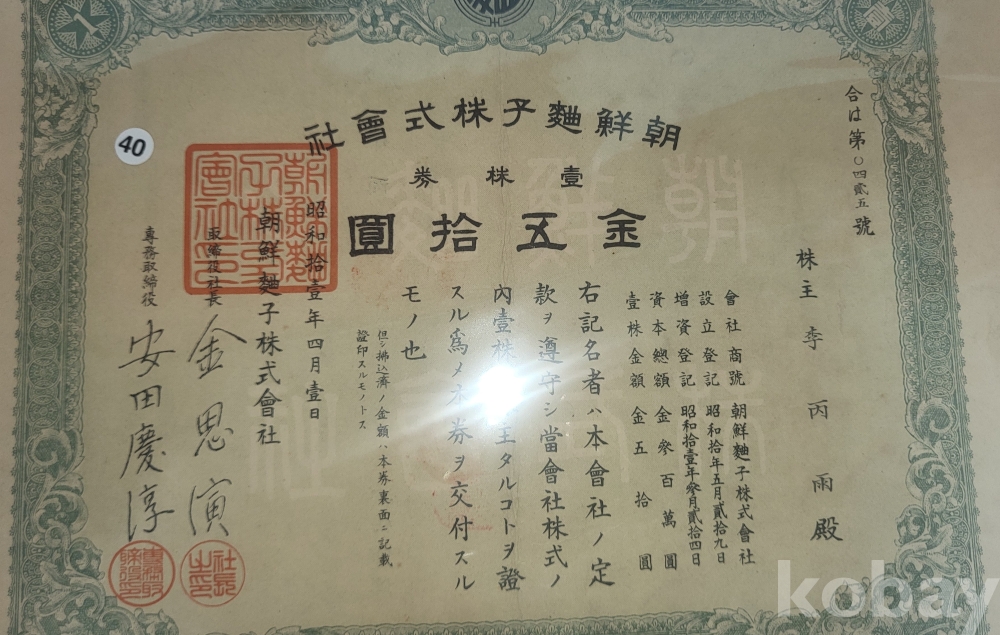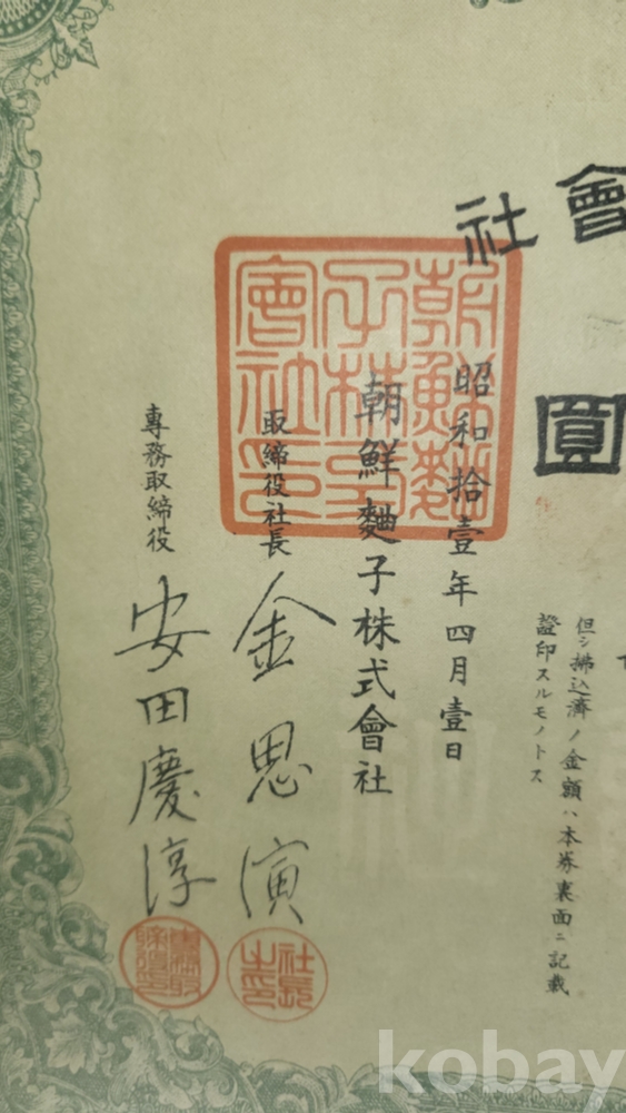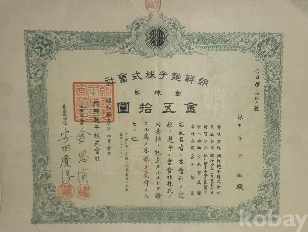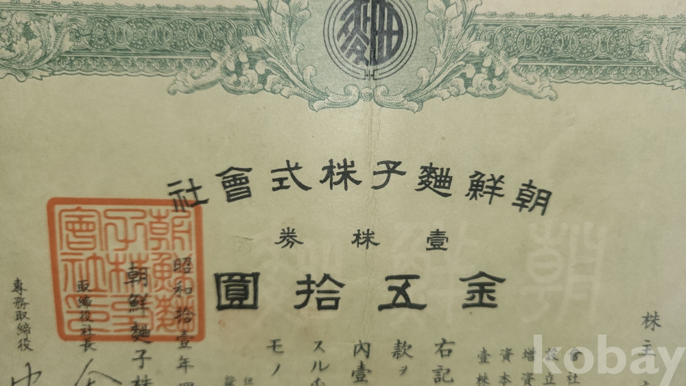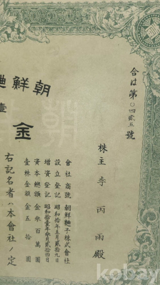1936년(쇼와11년)조선식산은행 (朝鮮殖産銀行)에서 발행한 주식증서입니다,