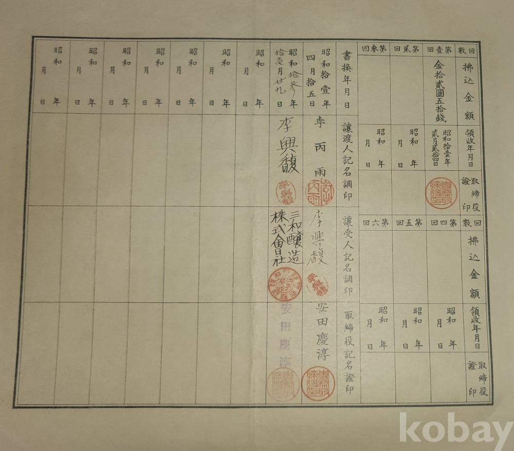 많은 식산은행 자료가 시중에 유통되고 있으나 이처럼 크기가 크고 뒷면의 명시 내용이 확실한 자료는 매우 귀한 편입니다,