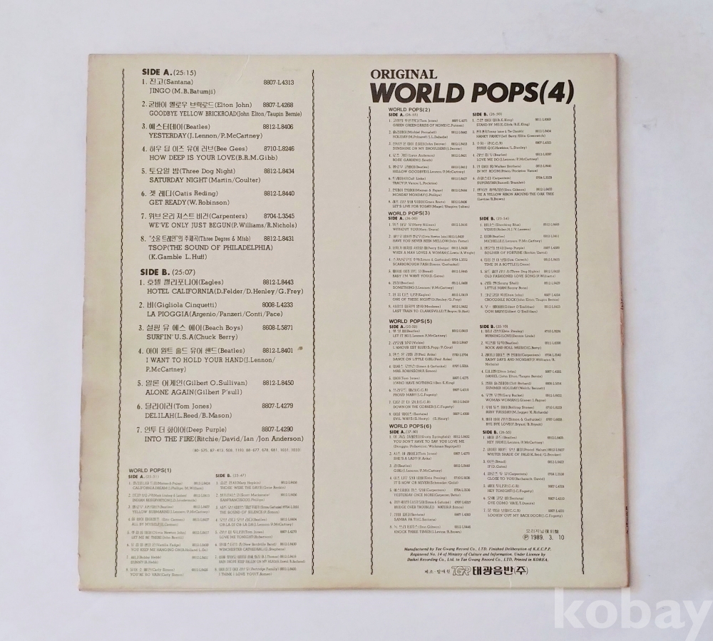 EX : 약간의 마모, 모서리 찢김 존재 음반상태