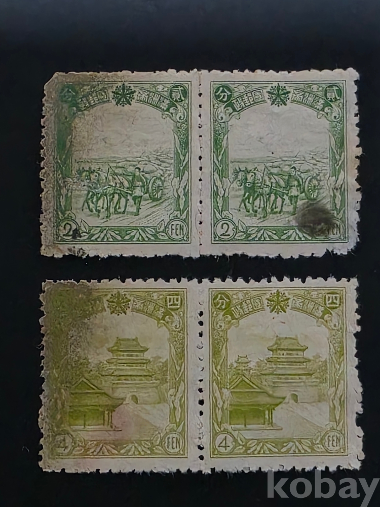 아주 귀한 만주우표 4장 일괄. 1900년대 클랙식 우표.