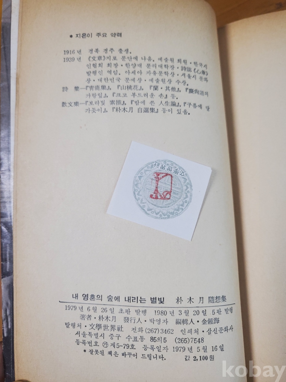 1. 내 영혼의 숲에 내리는 별빛, 박목월, 문학세계사, 1980년, 298쪽, 상태 상, 사진 참조