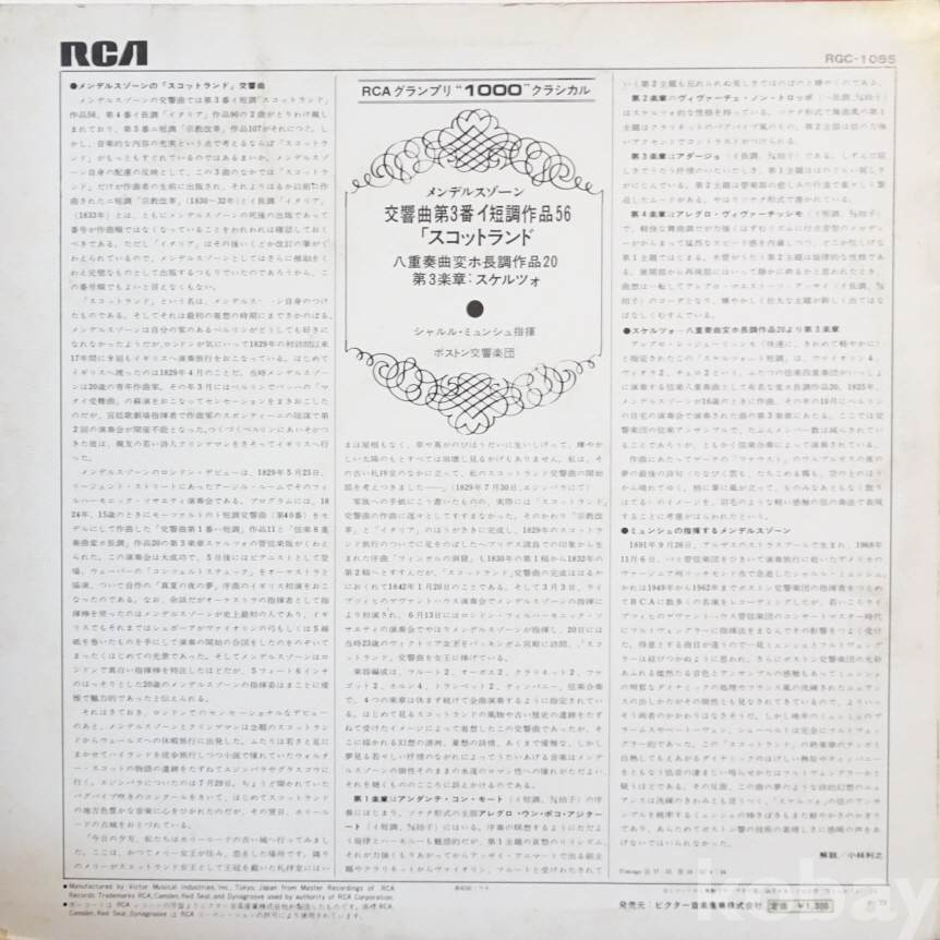 Mendelssohn, Munch / Boston Symphony - Symphony No. 3 In A Minor, Op. 56 "Scotch" / Scherzo From Octet In E-Flat