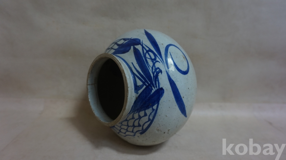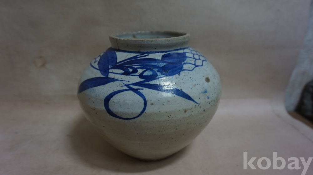 ◈◈조선후기../청화백자 굽높은 잎새,추상문,ㅡ''단지 호 한점◈◈