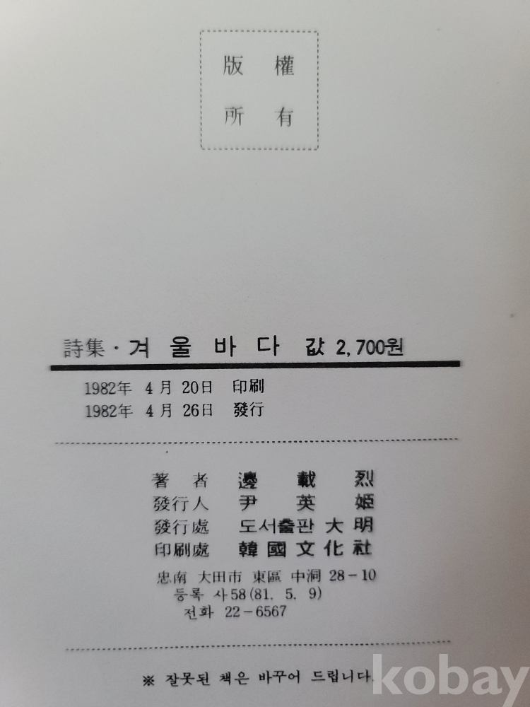 도서출판 '大明'에서 발행한 시집. 95쪽. 15.1X20.7X0.7cm