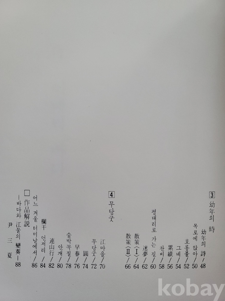 김윤성 시인의 序文. 윤삼하 시인의 해설. 4부 37편.