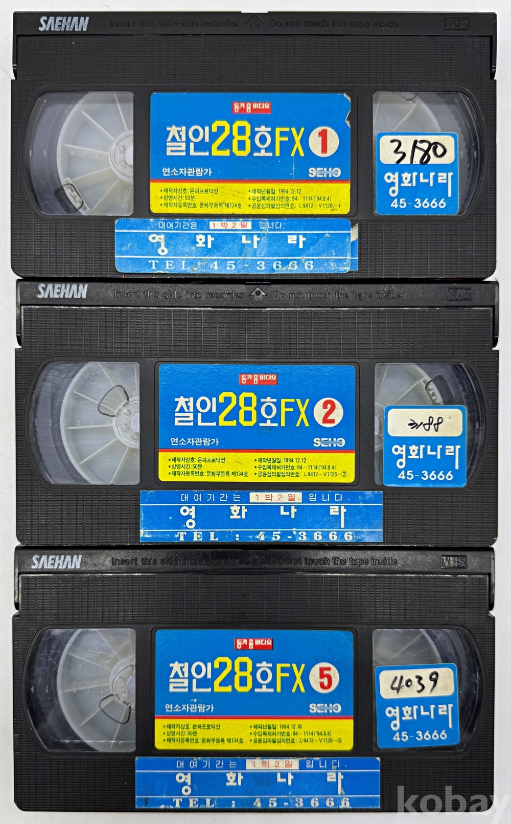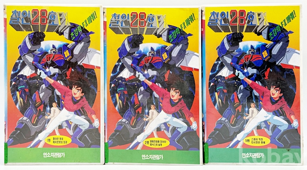 상품 설명 | 1) 철인 28호 FX 제1편 / 1994년 / 케이스 모서리 깨짐 있음 2) 철인 28호 FX 제2편 / 1994년 3) 철인 28호 FX 제5편 / 1994년 |