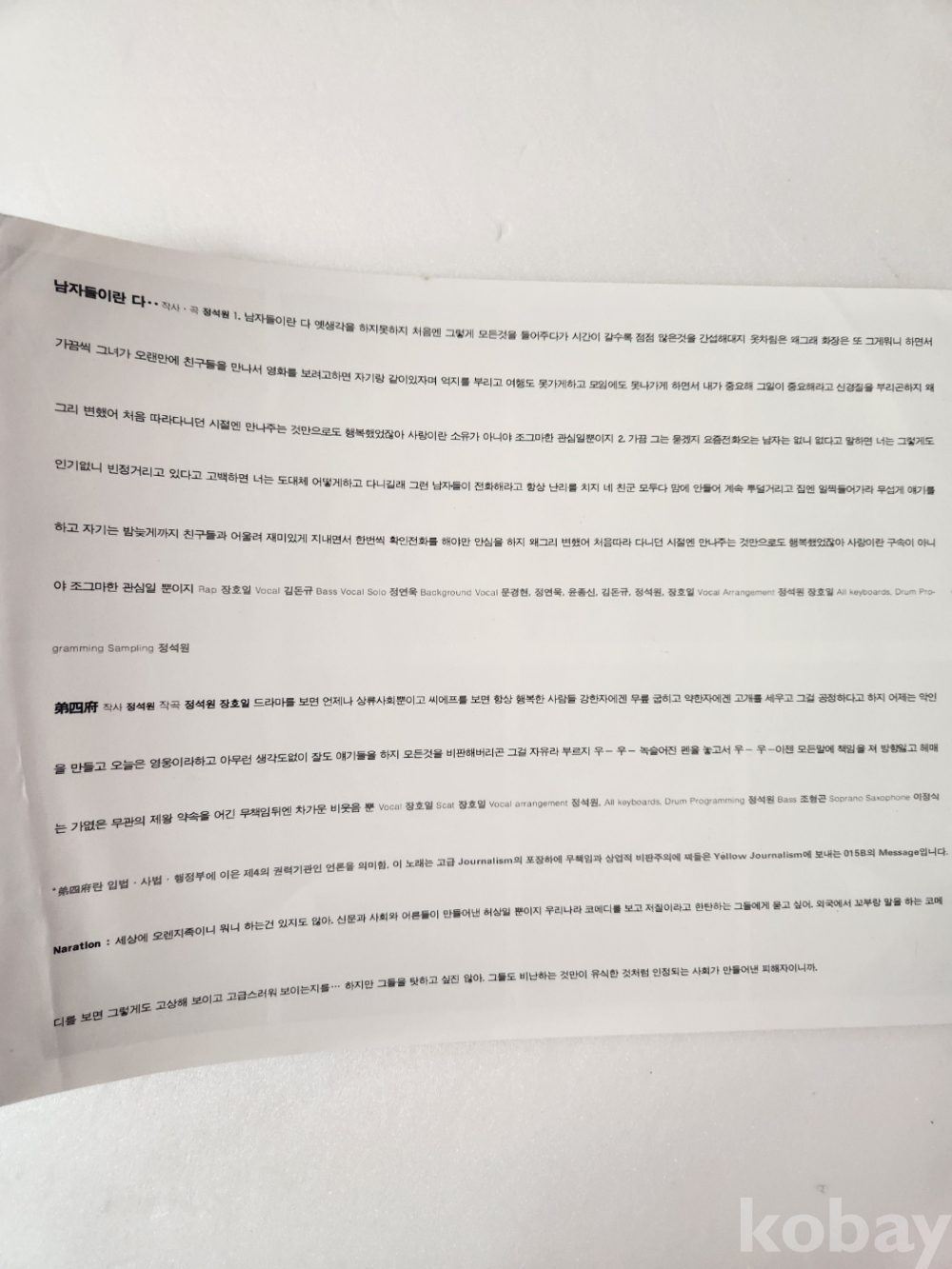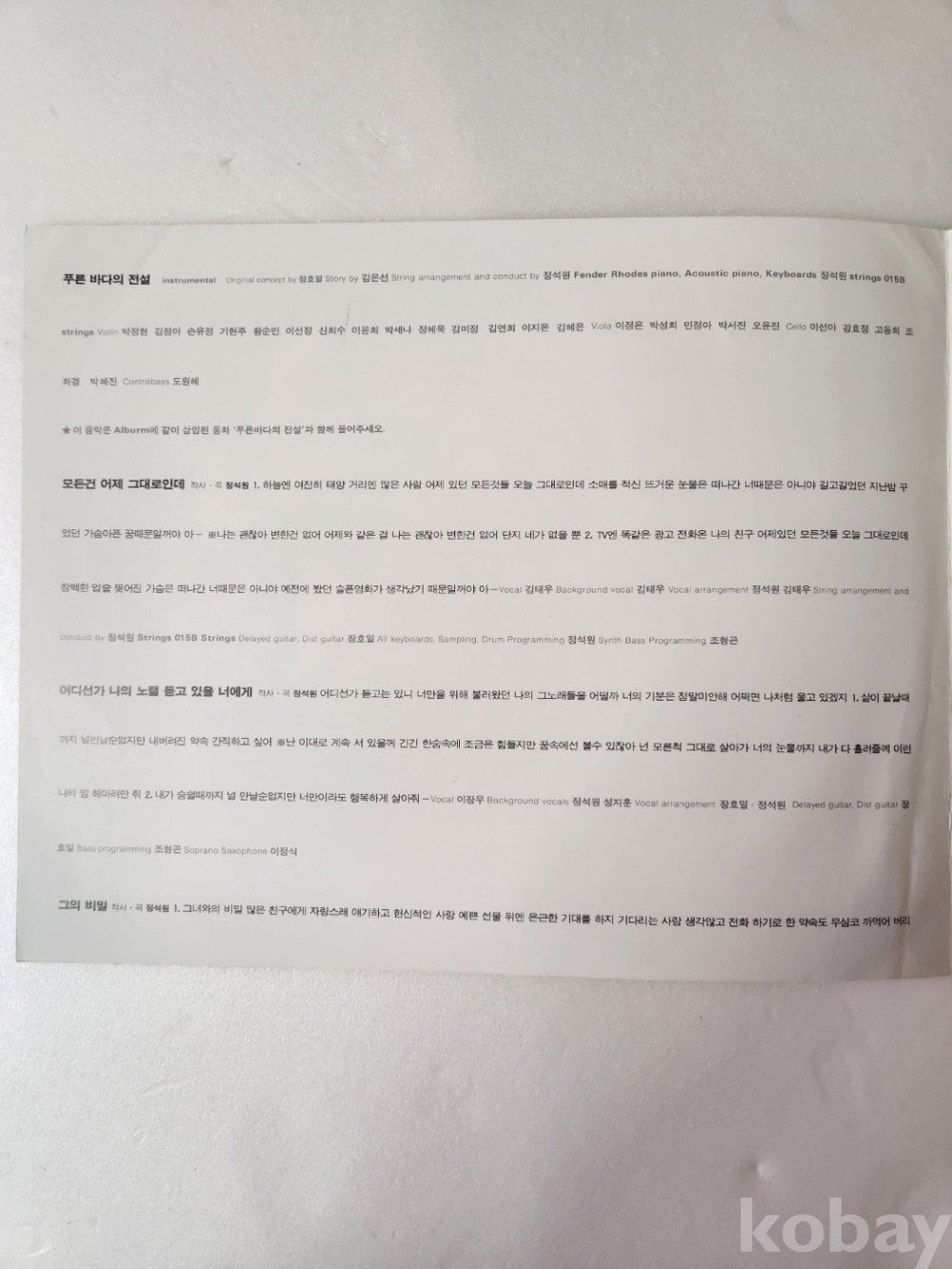 | 자켓상태 | EX : 약간의 마모, 모서리 찢김 존재 | 음반상태 | EX : 재생에 영향 없는 가벼운 기스 존재 | 발매정보 | 알수없음 | 가사지여부 | 유 |