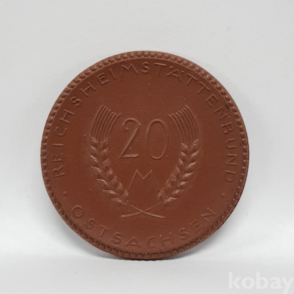 - 1921년 독일 40mm 놋겔트 20마르크 도자기 토큰(주화)