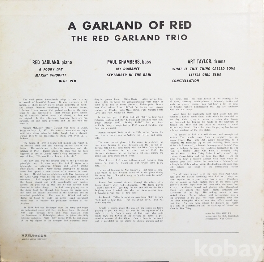 The Red Garland Trio With Paul Chambers And Art Taylor – A Garland Of Red